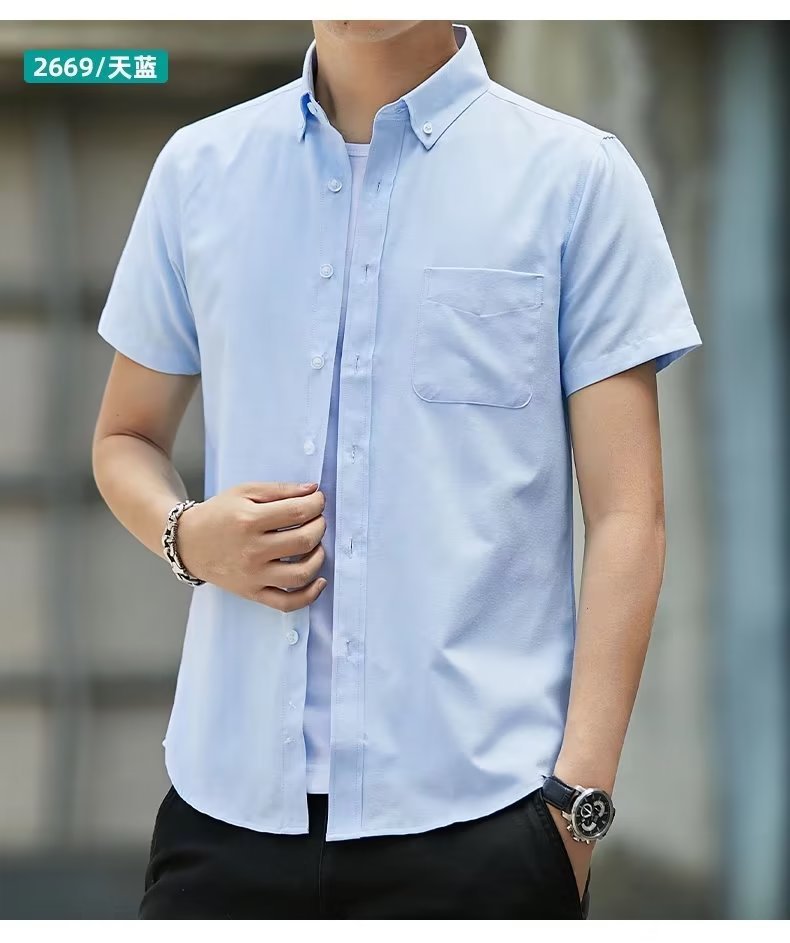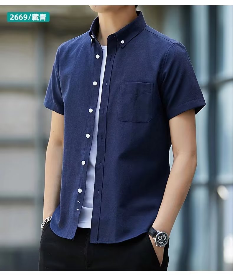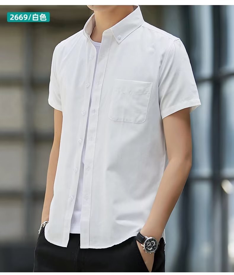 남자 캐주얼 심플 반팔 셔츠 여름 슬림핏 베이스 셔츠 한국식 청소년 패션 올매치 탑스토어 가기