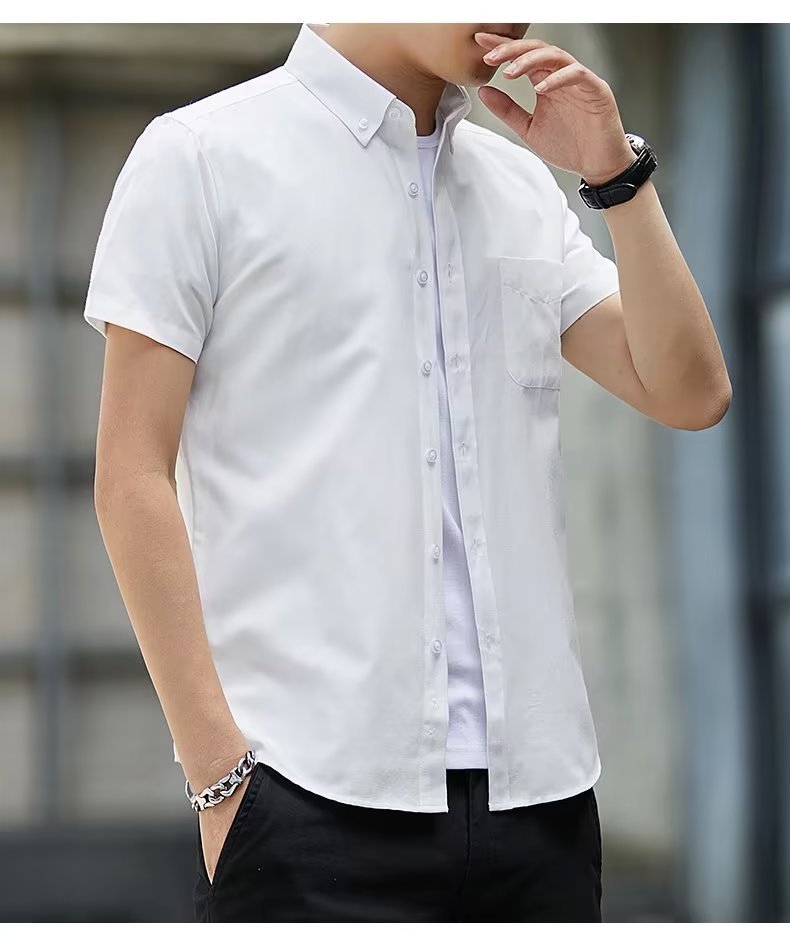 남자 캐주얼 심플 반팔 셔츠 여름 슬림핏 베이스 셔츠 한국식 청소년 패션 올매치 탑