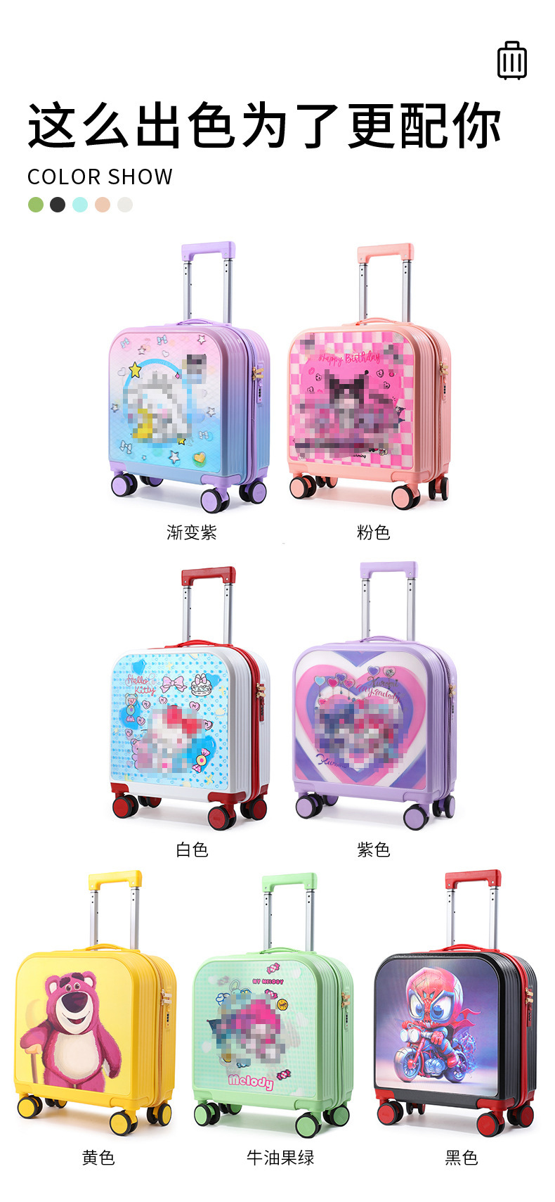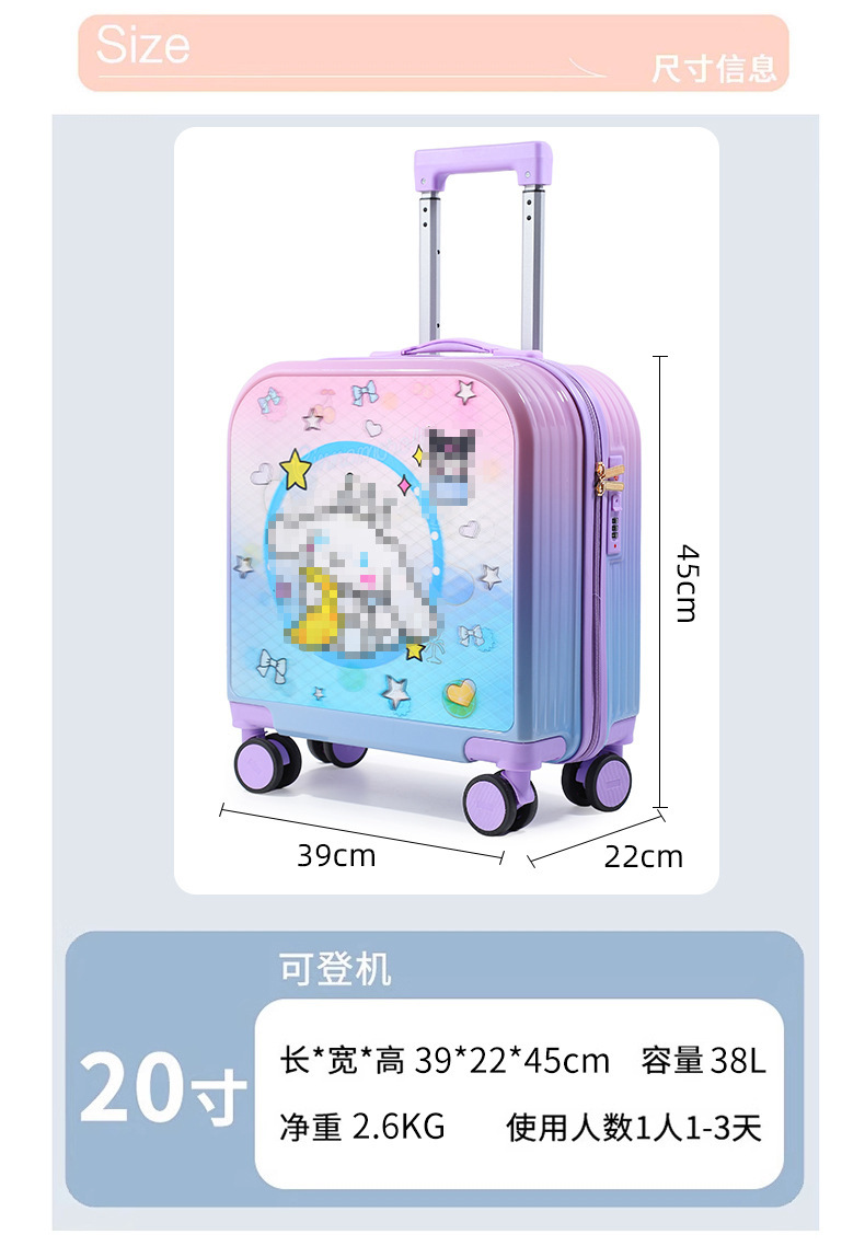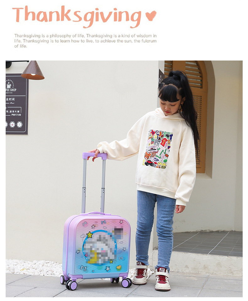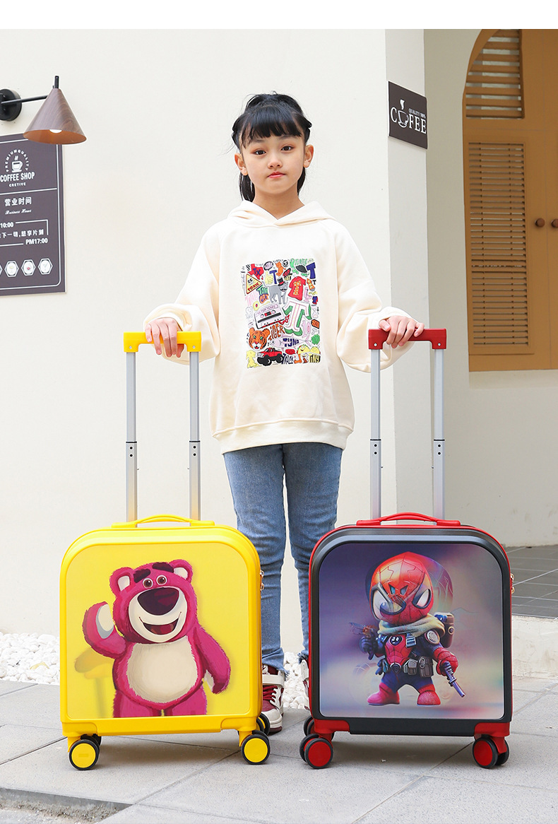 새로운 20 인치 어린이 수하물 3D 지도 가방 그라데이션 유니버설 휠 무음 탑승 트롤리 케이스 도매스토어 가기