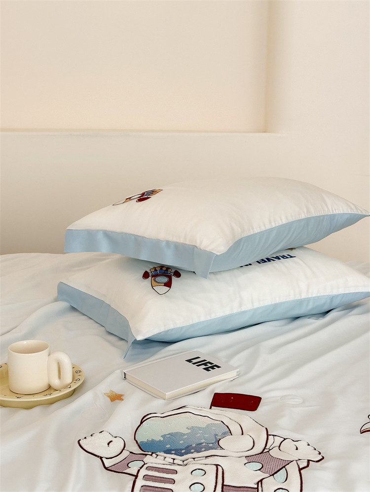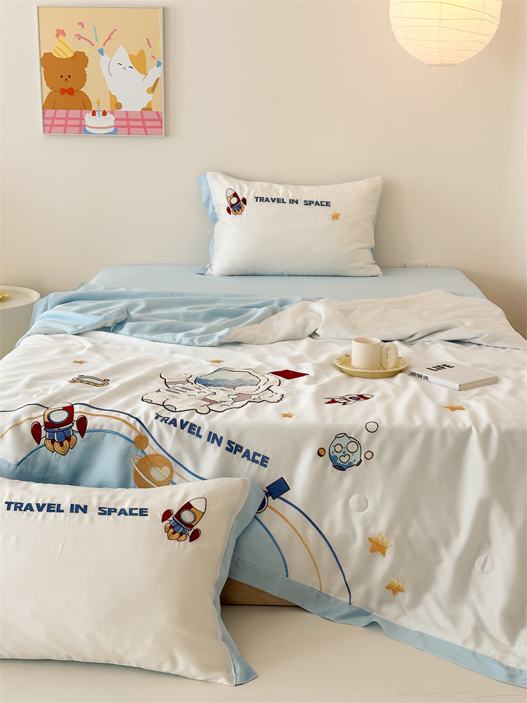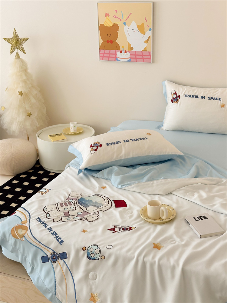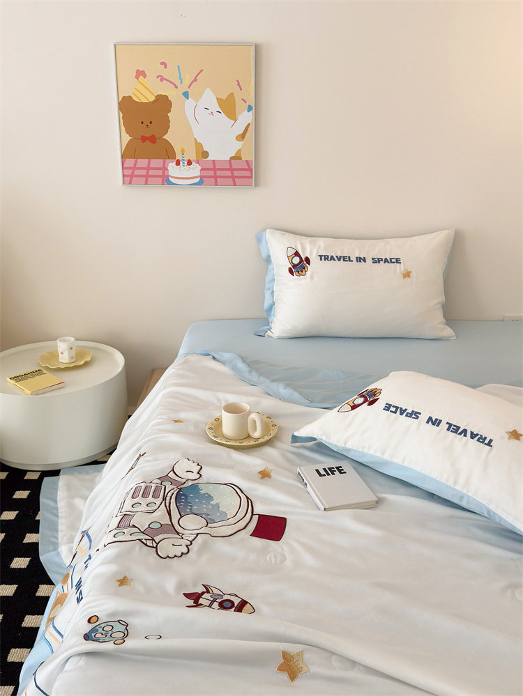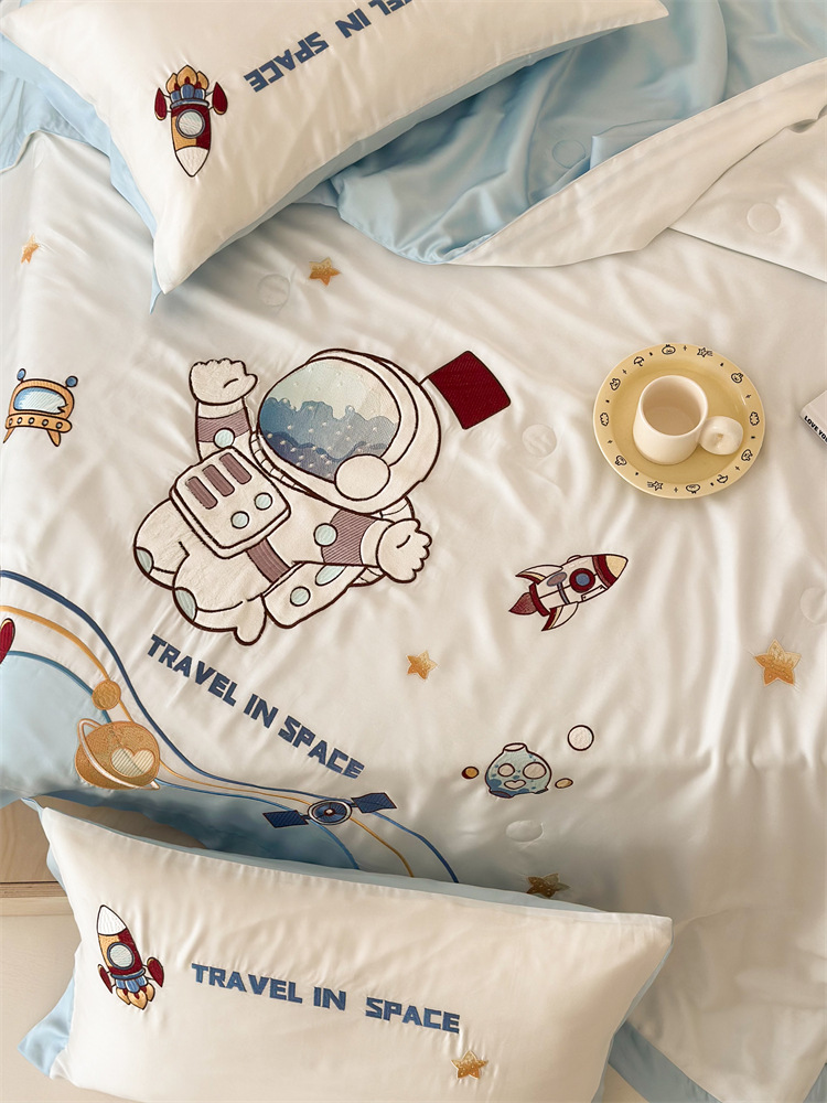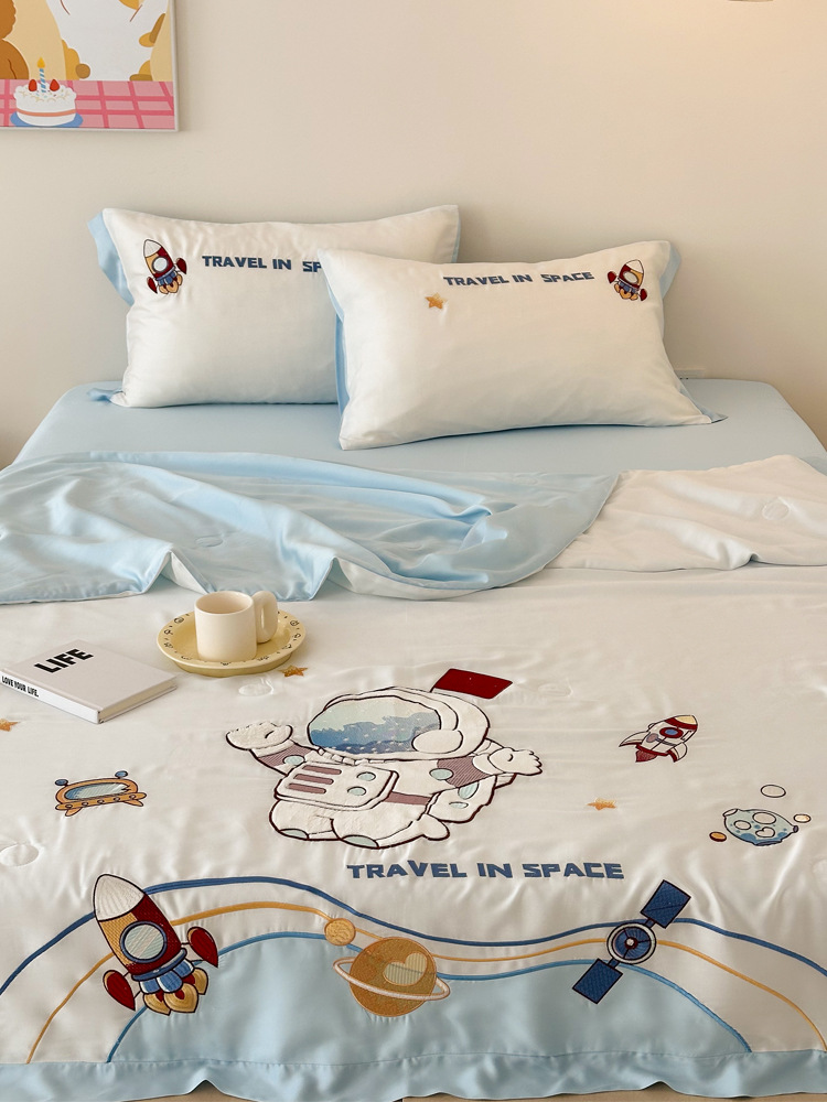 만화 우주 비행사 수 놓은 어린이 여름 퀼트 4 피스 세트 60 텐셀 여름 쿨 퀼트 세척 가능한 에어컨 퀼트 얇은 퀼트