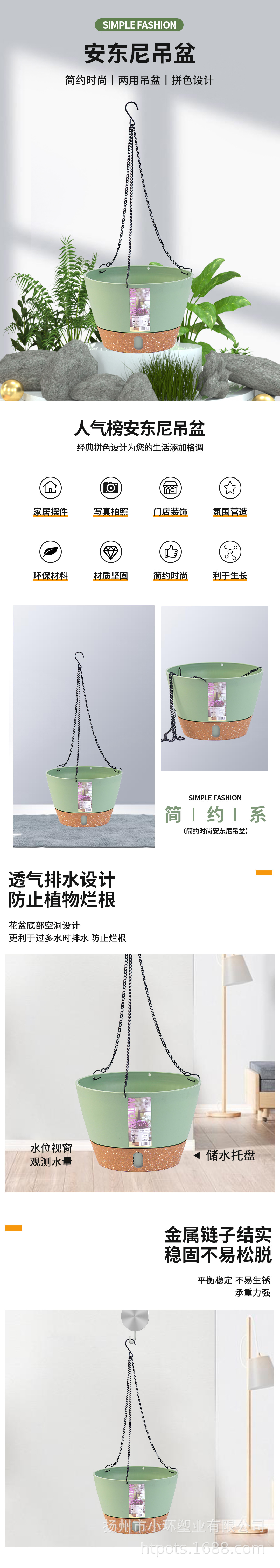 Anthony Diaolan 꽃 냄비 플라스틱 실내 교수형 바구니 꽃 냄비 녹색 등나무 가구 발코니 야외