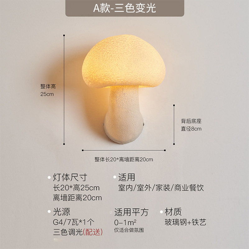 프랑스 크림 버섯 벽 램프 중간 고대 빈티지 일본 스타일-조용한 스타일 어린이 침실 멀리 발코니 작은 벽 램프스토어 가기