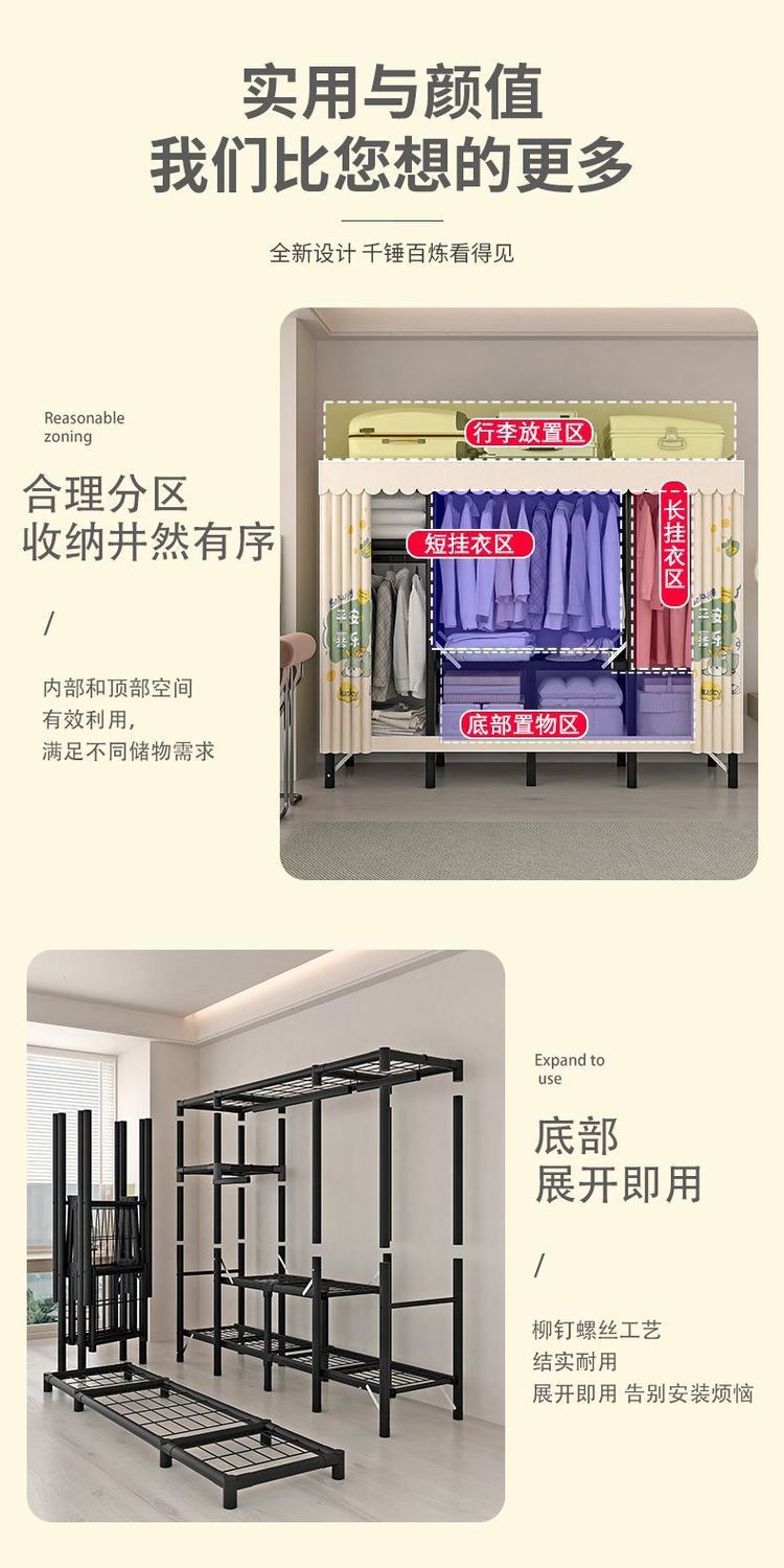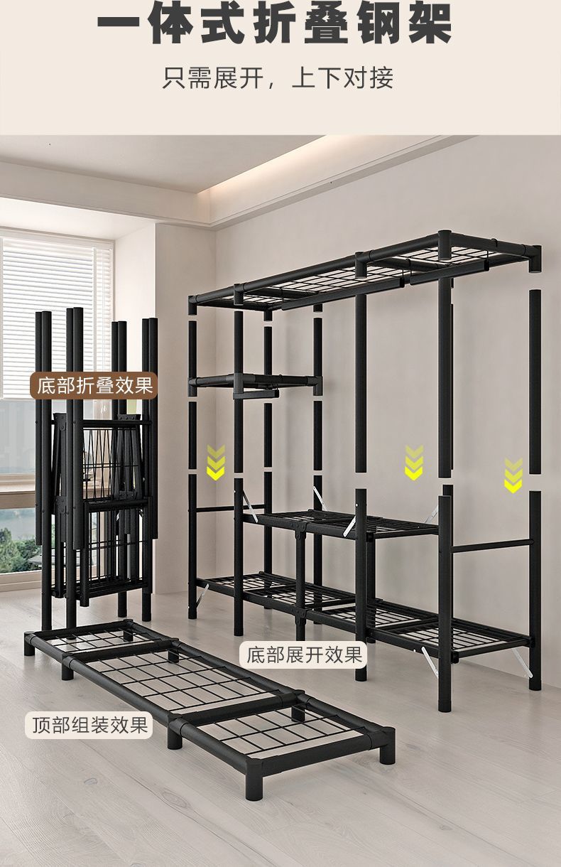 설치 무료 옷장 홈 침실 접이식 옷장 두꺼운 풀 스틸 프레임 간단한 옷장 임대 방 강력하고 내구성스토어 가기