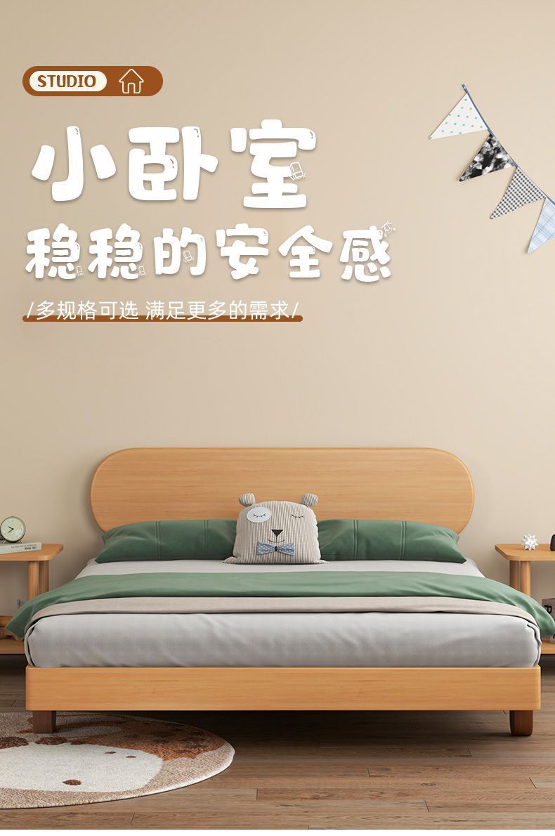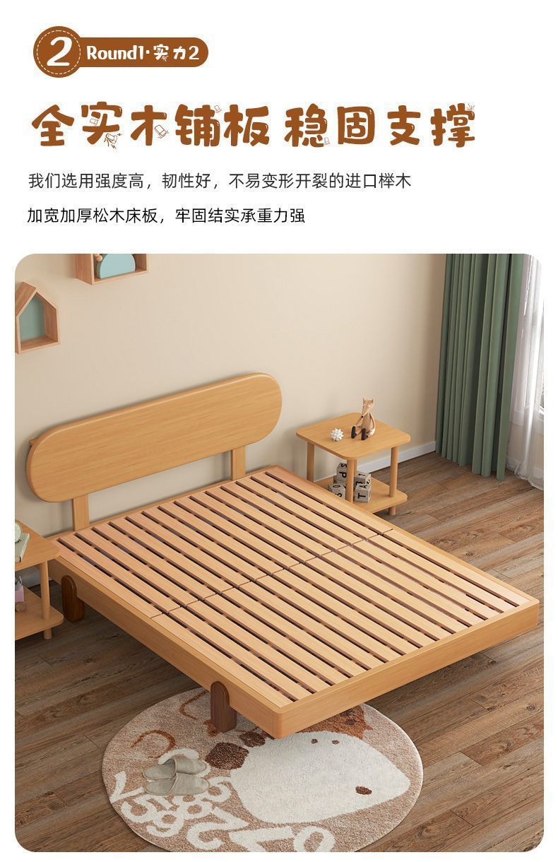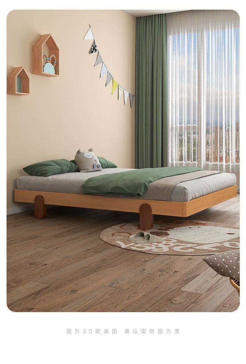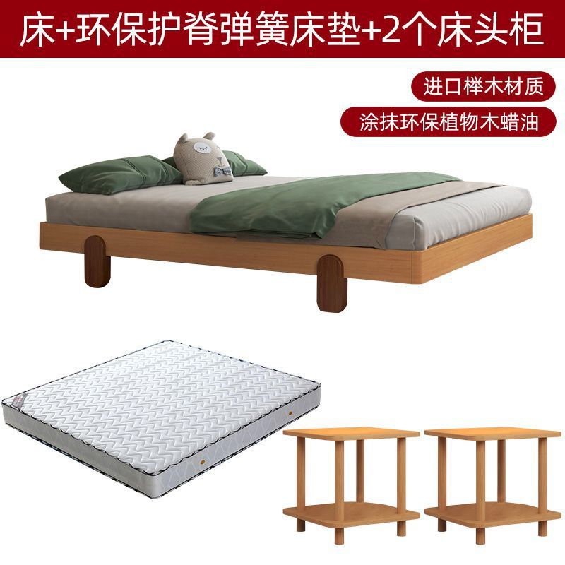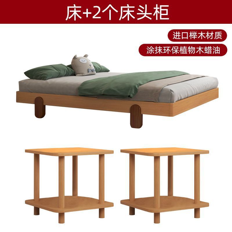 북유럽 간단한 다다미 침대 없음 머리 옆 침대 공주 스타일 더블 침대 풀 솔리드 우드 너도밤 프레임 어린이 솔리드 우드 침대