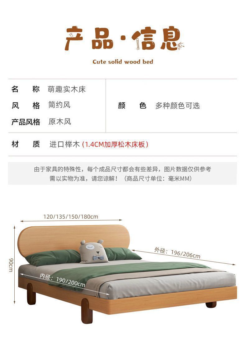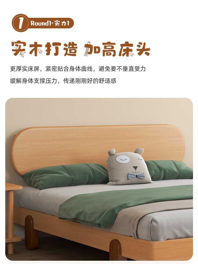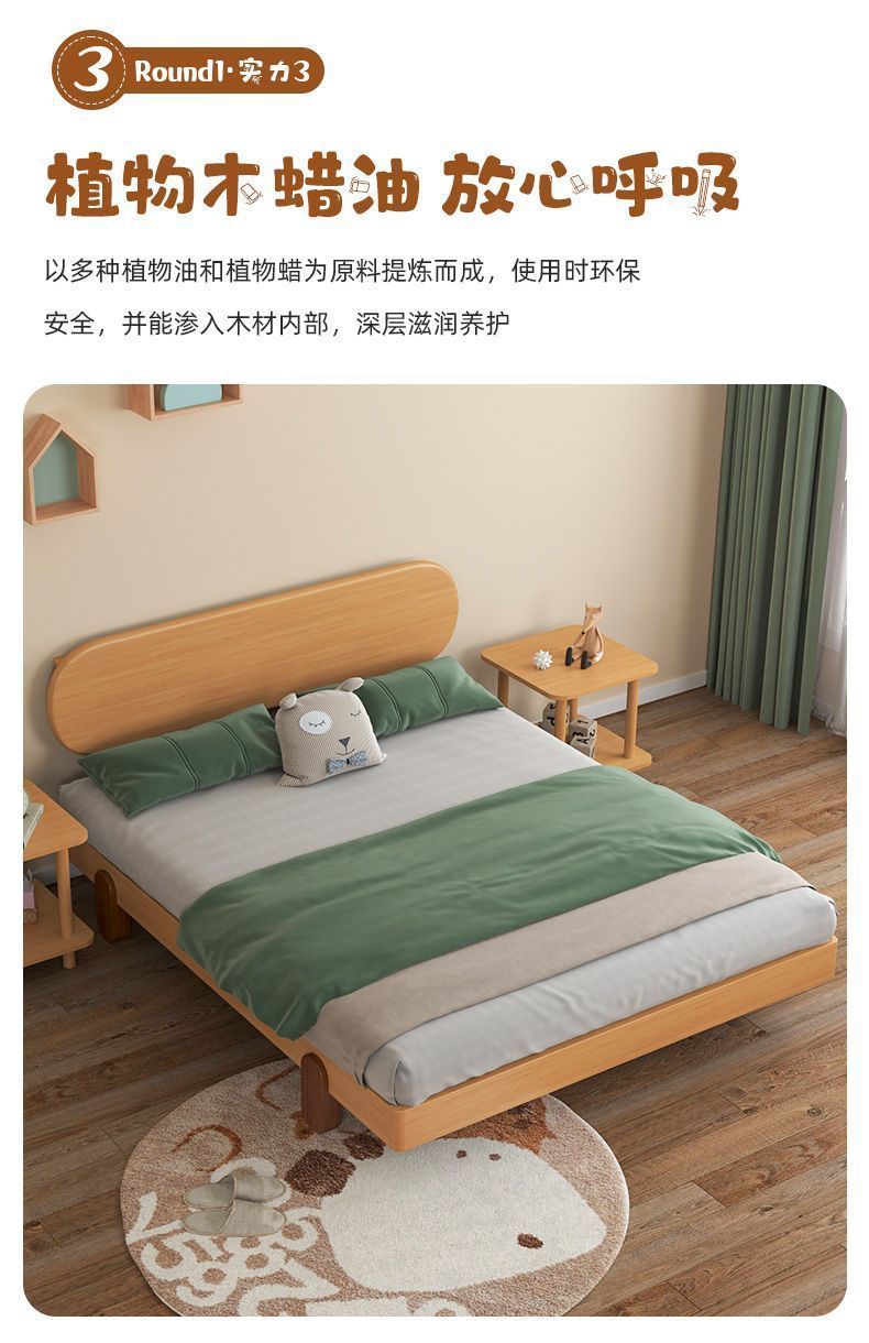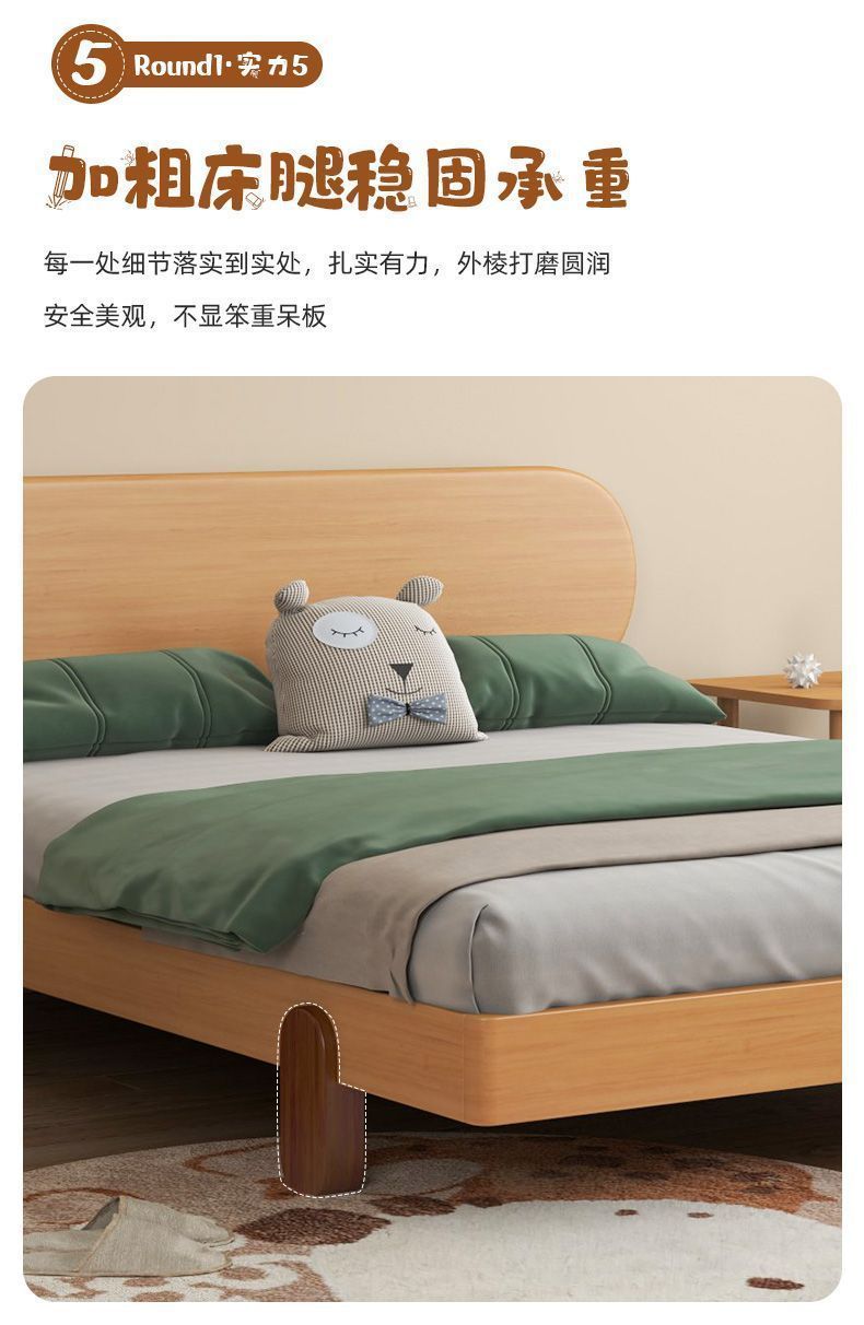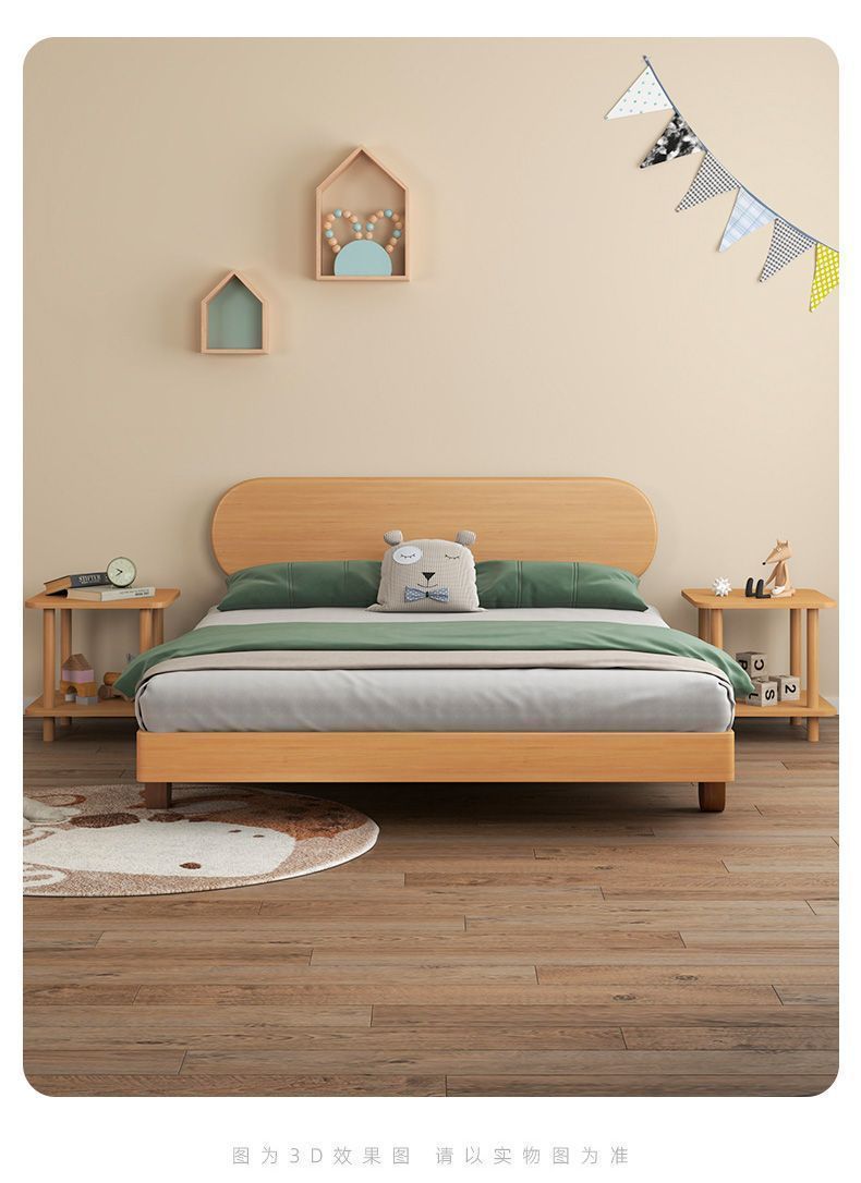 북유럽 간단한 다다미 침대 없음 머리 옆 침대 공주 스타일 더블 침대 풀 솔리드 우드 너도밤 프레임 어린이 솔리드 우드 침대