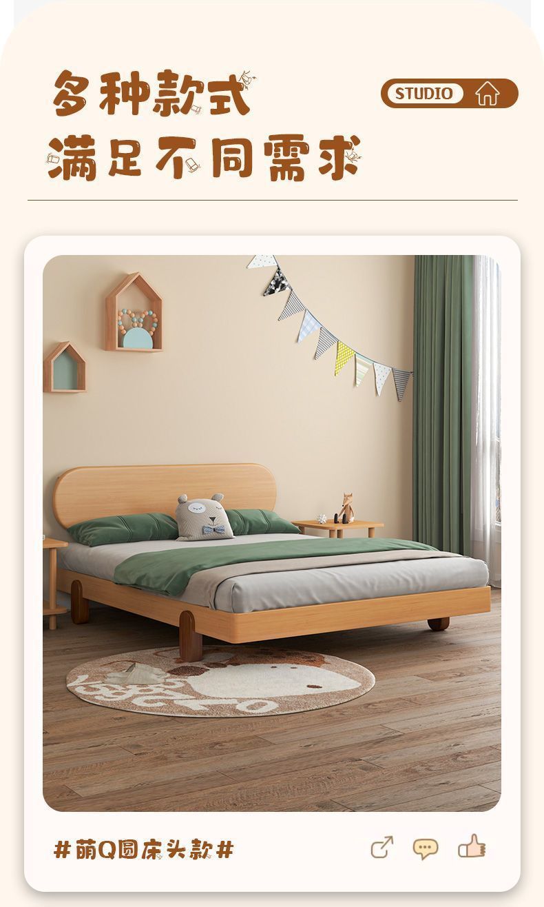 북유럽 간단한 다다미 침대 없음 머리 옆 침대 공주 스타일 더블 침대 풀 솔리드 우드 너도밤 프레임 어린이 솔리드 우드 침대스토어 가기