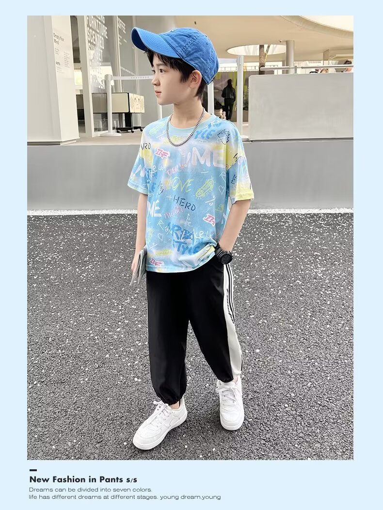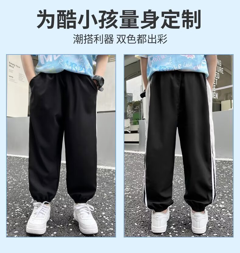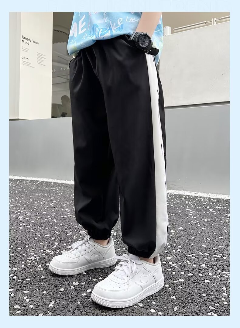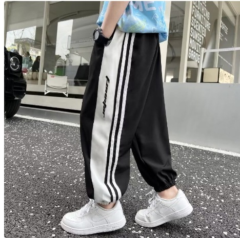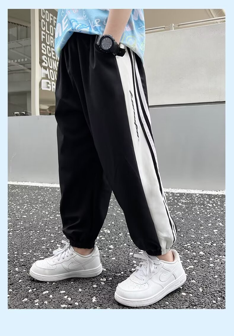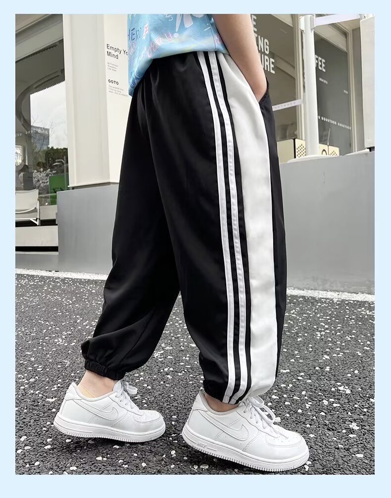 3 개의 바 스트라이프 스웨트 팬츠 소년의 봄과 가을 트렌디 브랜드 올매치 딥 와이드 레그 스포츠 팬츠 (Drawstring Legs Casual Long)