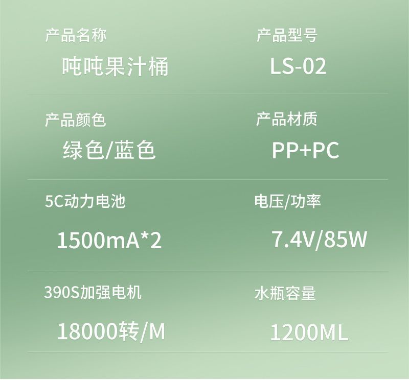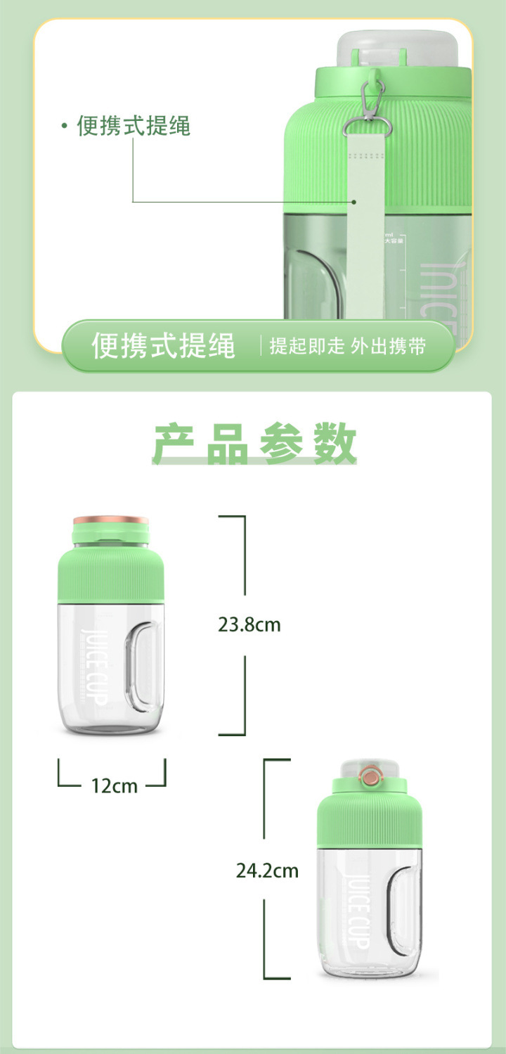 1200ml大容量榨汁桶果汁吨吨桶充电无线鲜榨水果汁机随行杯果汁杯