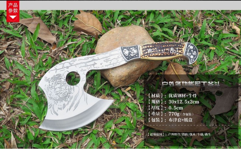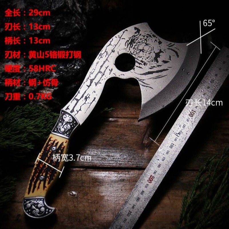 • 타이거 액스(Tiger Ax)에는 접이식 칼이 함께 제공됩니다.