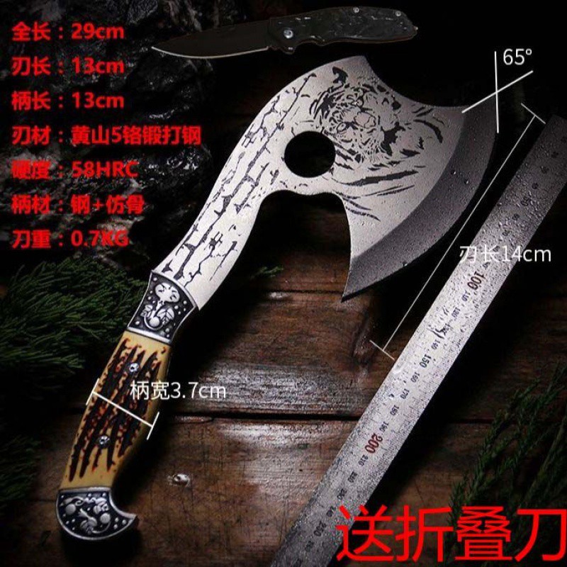 • 황소 머리 도끼에는 접이식 칼이 함께 제공됩니다.