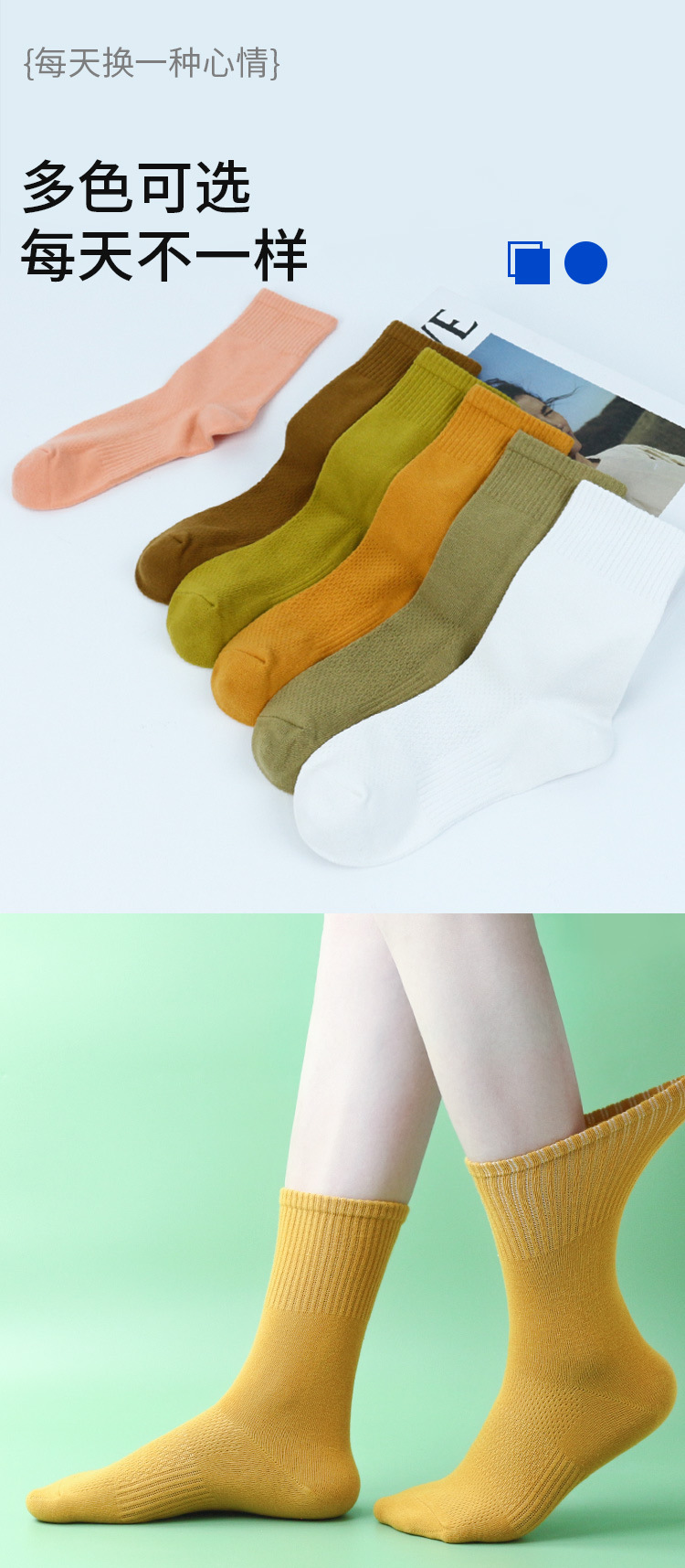 여성용 단색 면 양말 봄 가을 땀 흡수 통기성 중간 길이 양말 마찰 방지 항균 방취 캐주얼 양말 도매스토어 가기