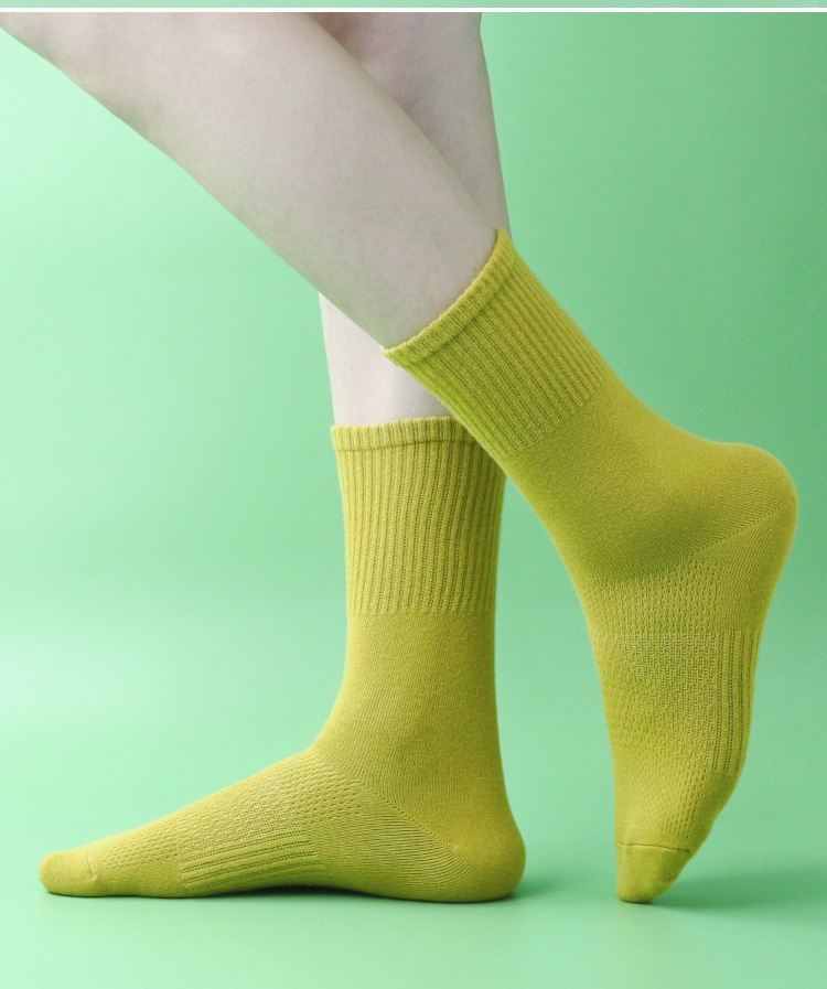 여성용 단색 면 양말 봄 가을 땀 흡수 통기성 중간 길이 양말 마찰 방지 항균 방취 캐주얼 양말 도매