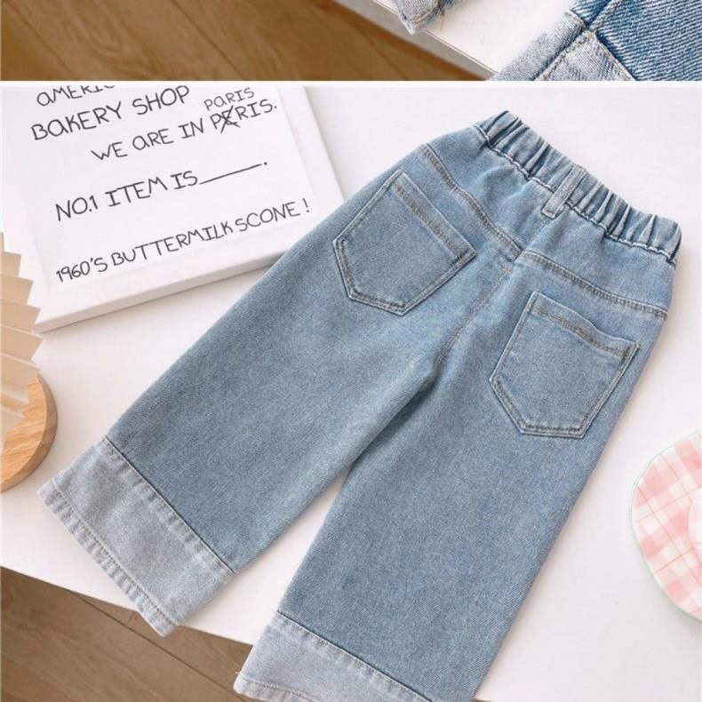 한국 스타일 소녀 스트레이트 다리 청바지 봄과 가을 서양식 패션 느슨한 여성의 보물 넓은 다리 바지 어린이 바지스토어 가기