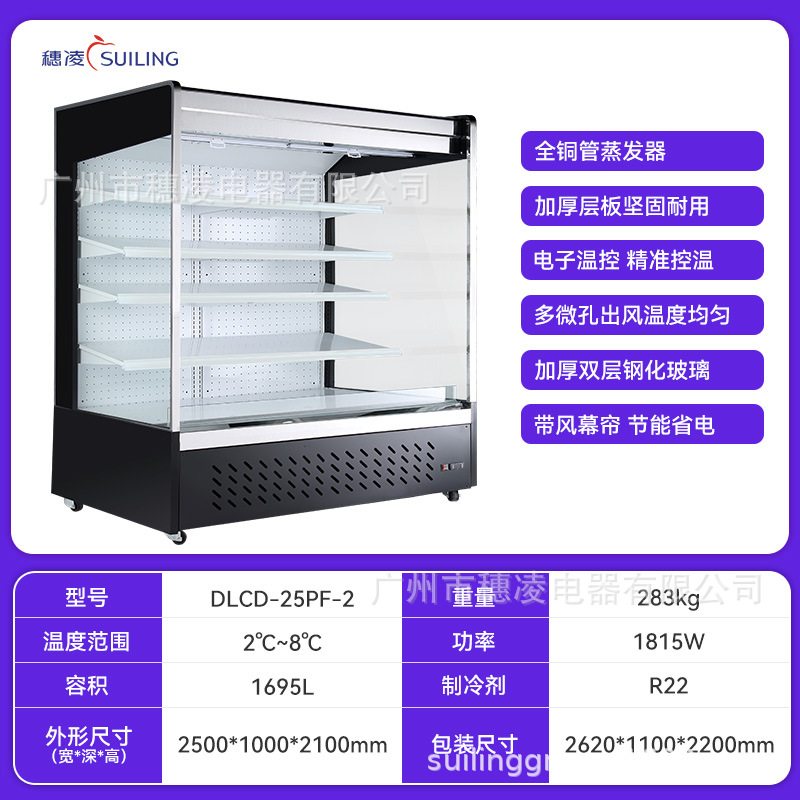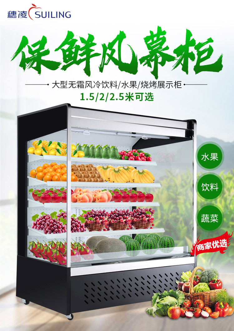Suiling 냉동고 에어 커튼 캐비닛 공냉식 서리 방지 디스플레이 캐비닛 체인 매장 대형 슈퍼마켓 신선 유지 에어 커튼 캐비닛 공장 냉장고스토어 가기