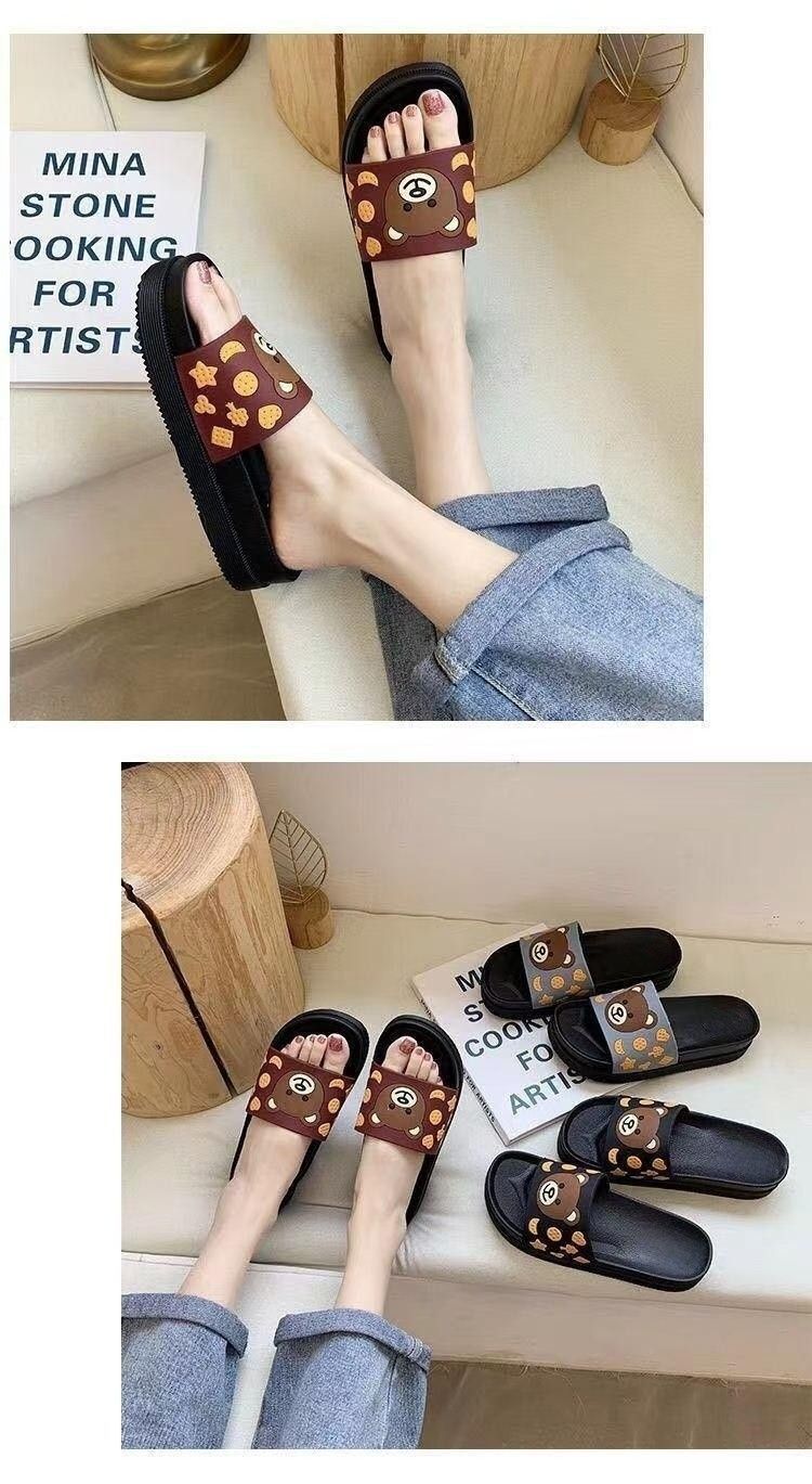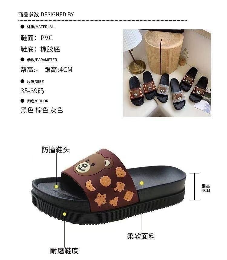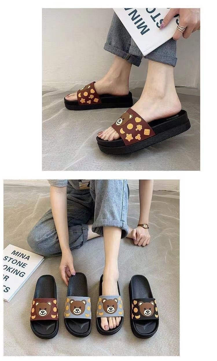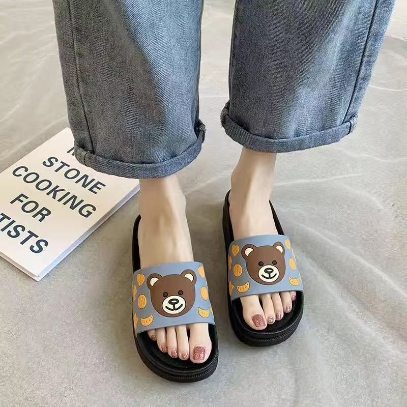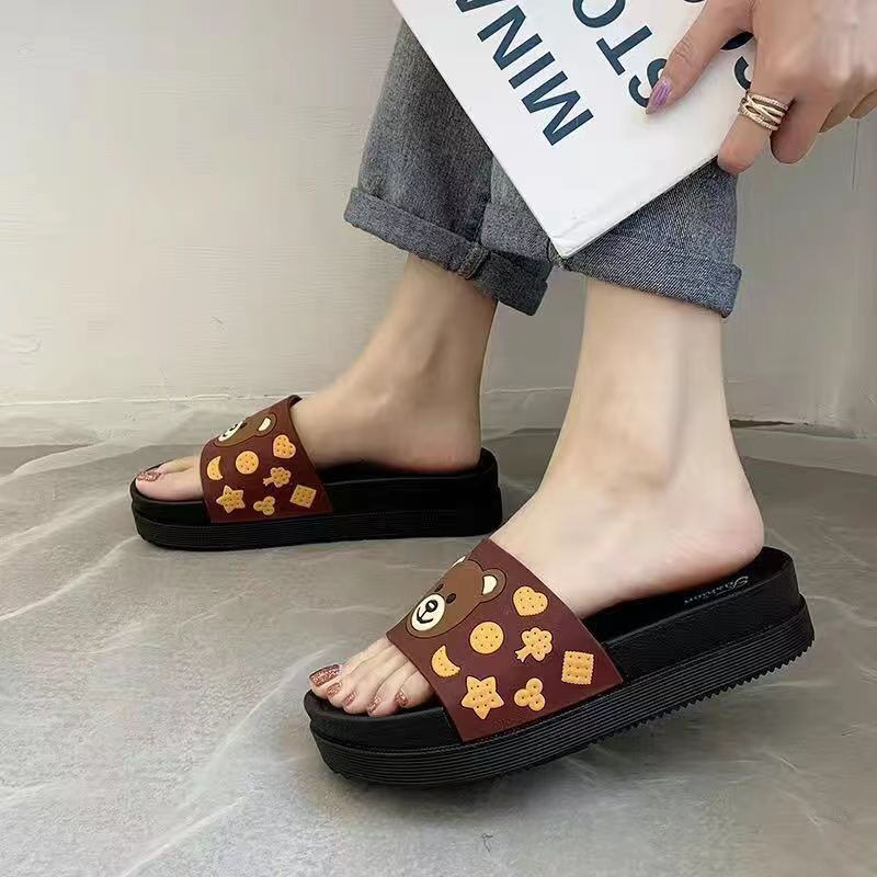 2024 슬리퍼 여성의 여름 두꺼운 바닥 메쉬 적외선 착용 패션 귀여운 곰 가정용 샌들과 슬리퍼 하이힐 웨지 힐 슬리퍼