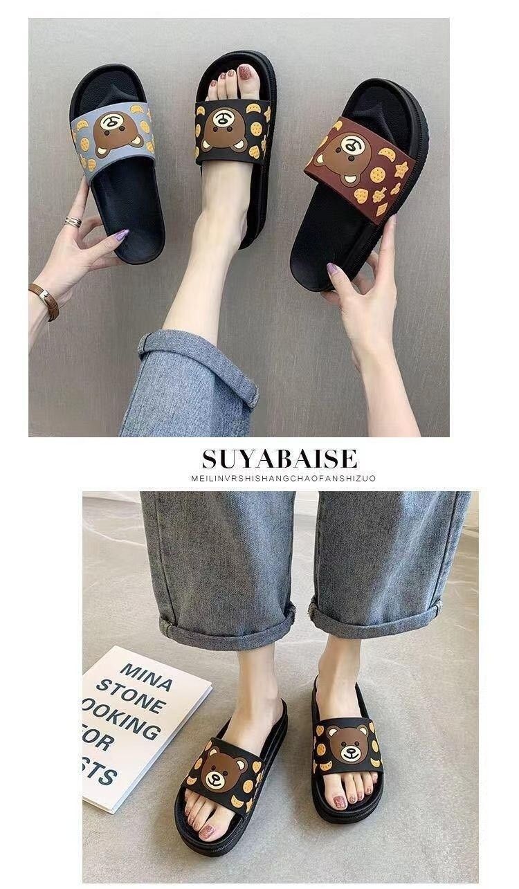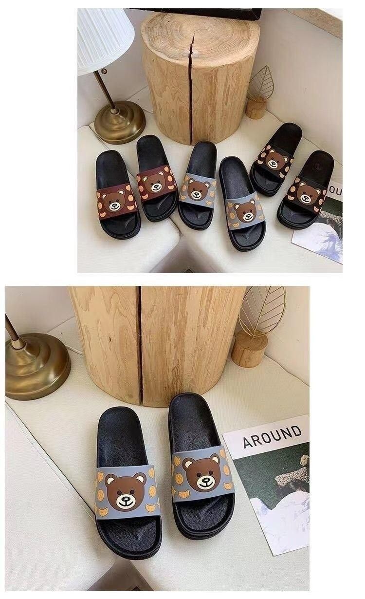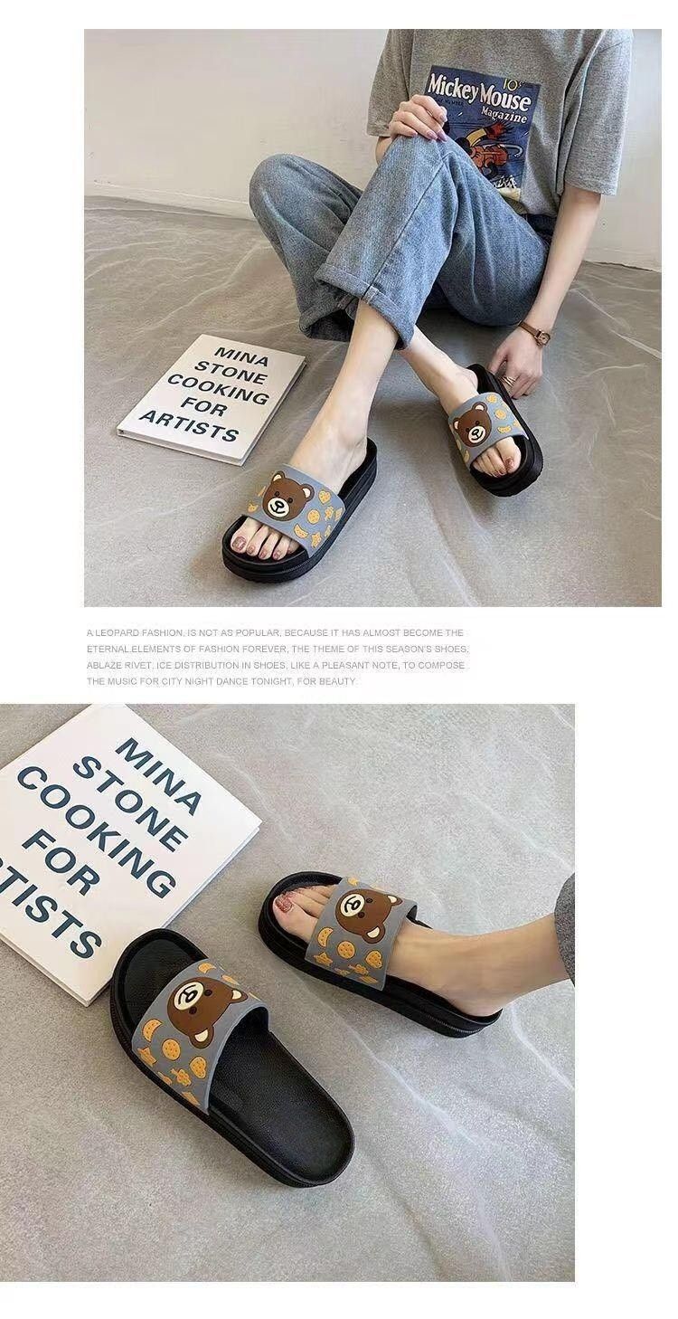 2024 슬리퍼 여성의 여름 두꺼운 바닥 메쉬 적외선 착용 패션 귀여운 곰 가정용 샌들과 슬리퍼 하이힐 웨지 힐 슬리퍼