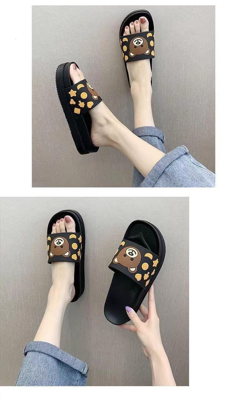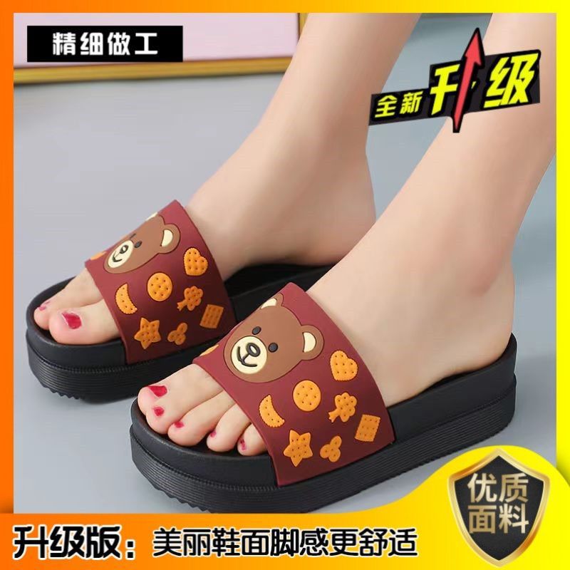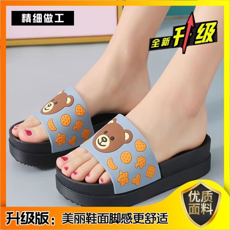 2024 슬리퍼 여성의 여름 두꺼운 바닥 메쉬 적외선 착용 패션 귀여운 곰 가정용 샌들과 슬리퍼 하이힐 웨지 힐 슬리퍼스토어 가기