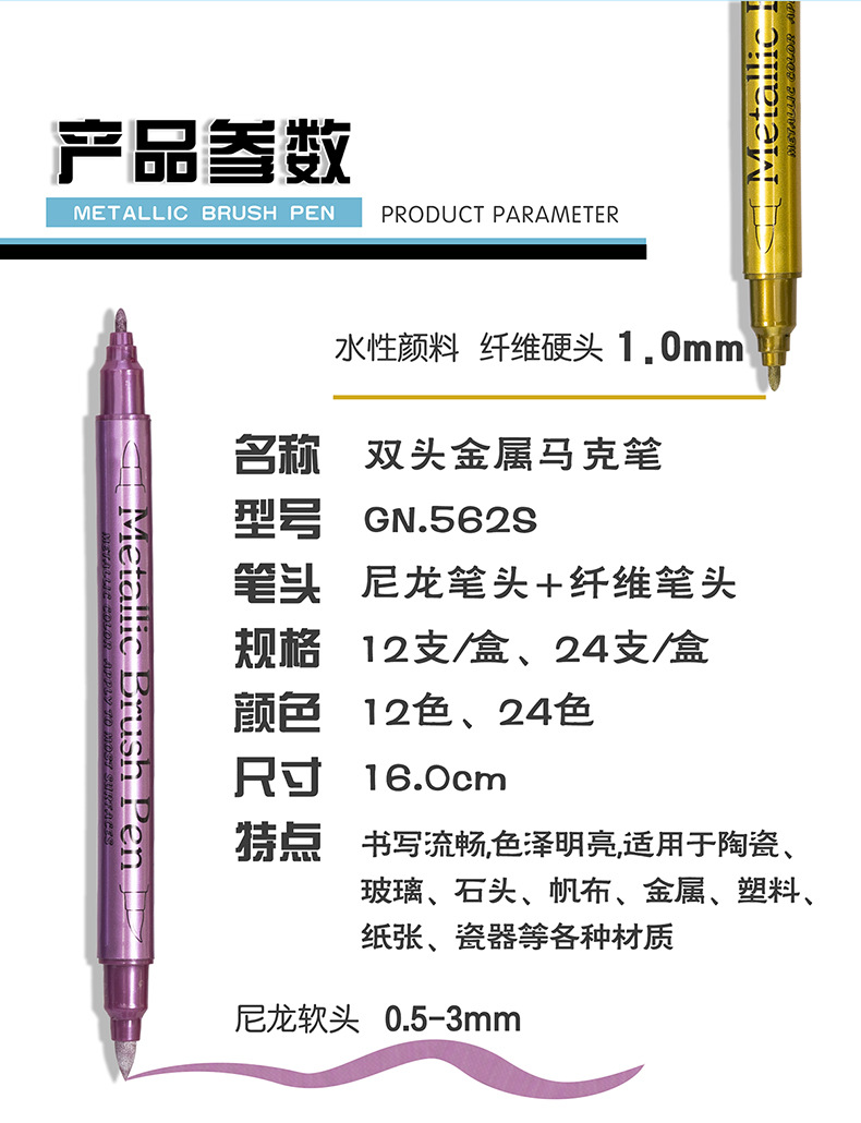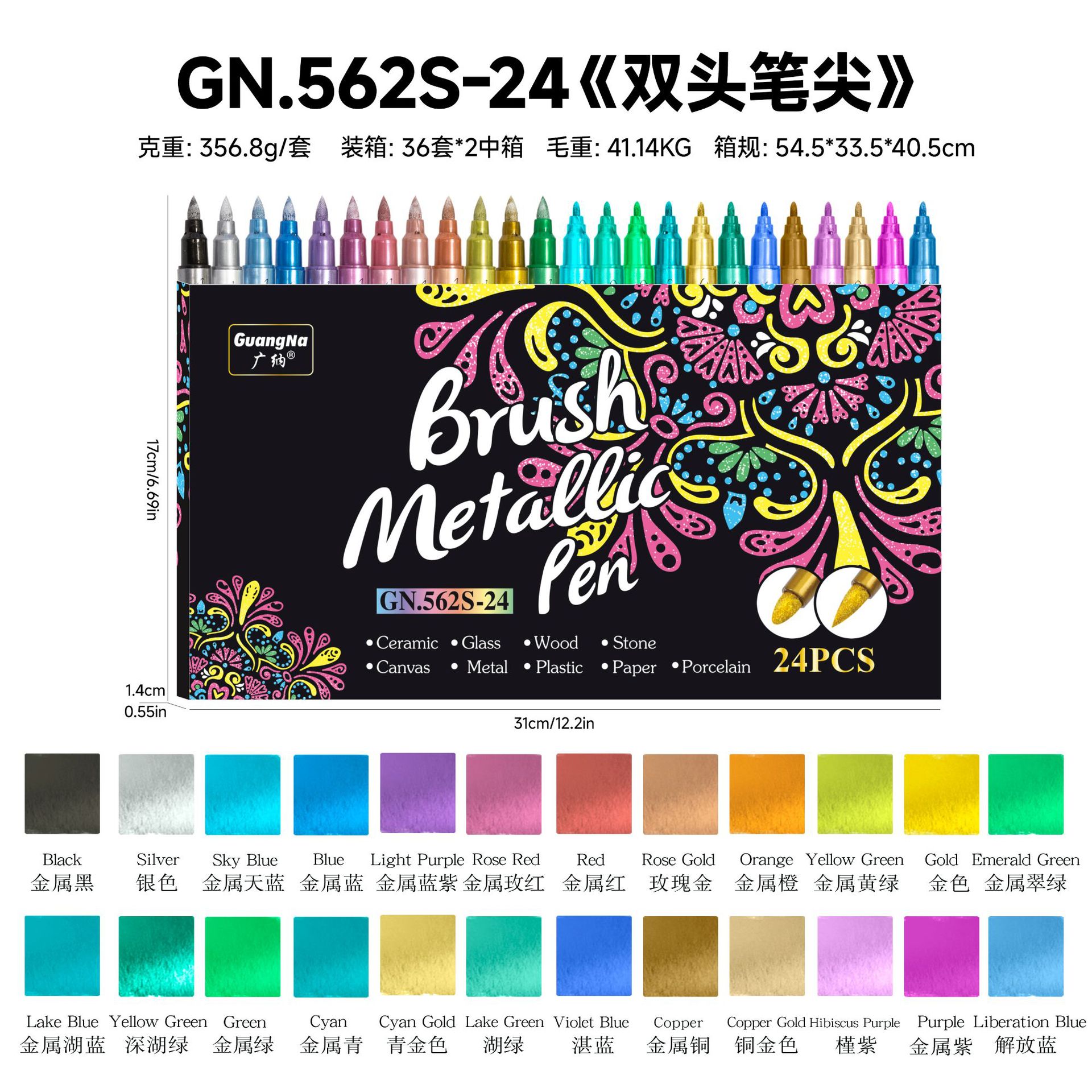 광나 GN562S 컬러 더블 헤드 24 컬러 수 인성 금속 페인트 펜 더블 헤드 아트 마커 그래피티 마크