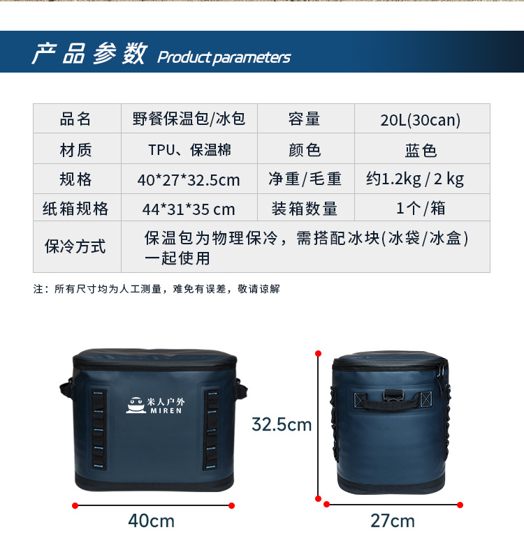 쌀 사람들 30can 방수 TPU 아이스 백 캠핑 피크닉 휴대용 절연 가방 비치 바베큐 음료 쿨러 가방