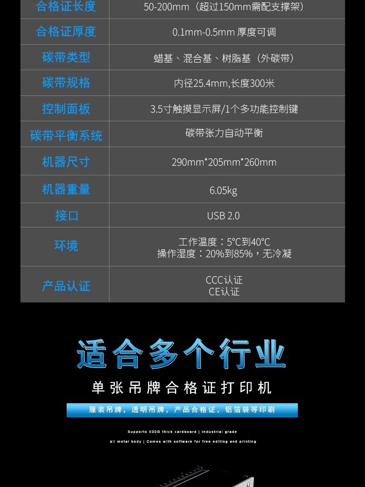 새로운 단일 태그 의류 신발 및 모자 가방 속옷 밸브 의료 가구 화재 증명서 프린터