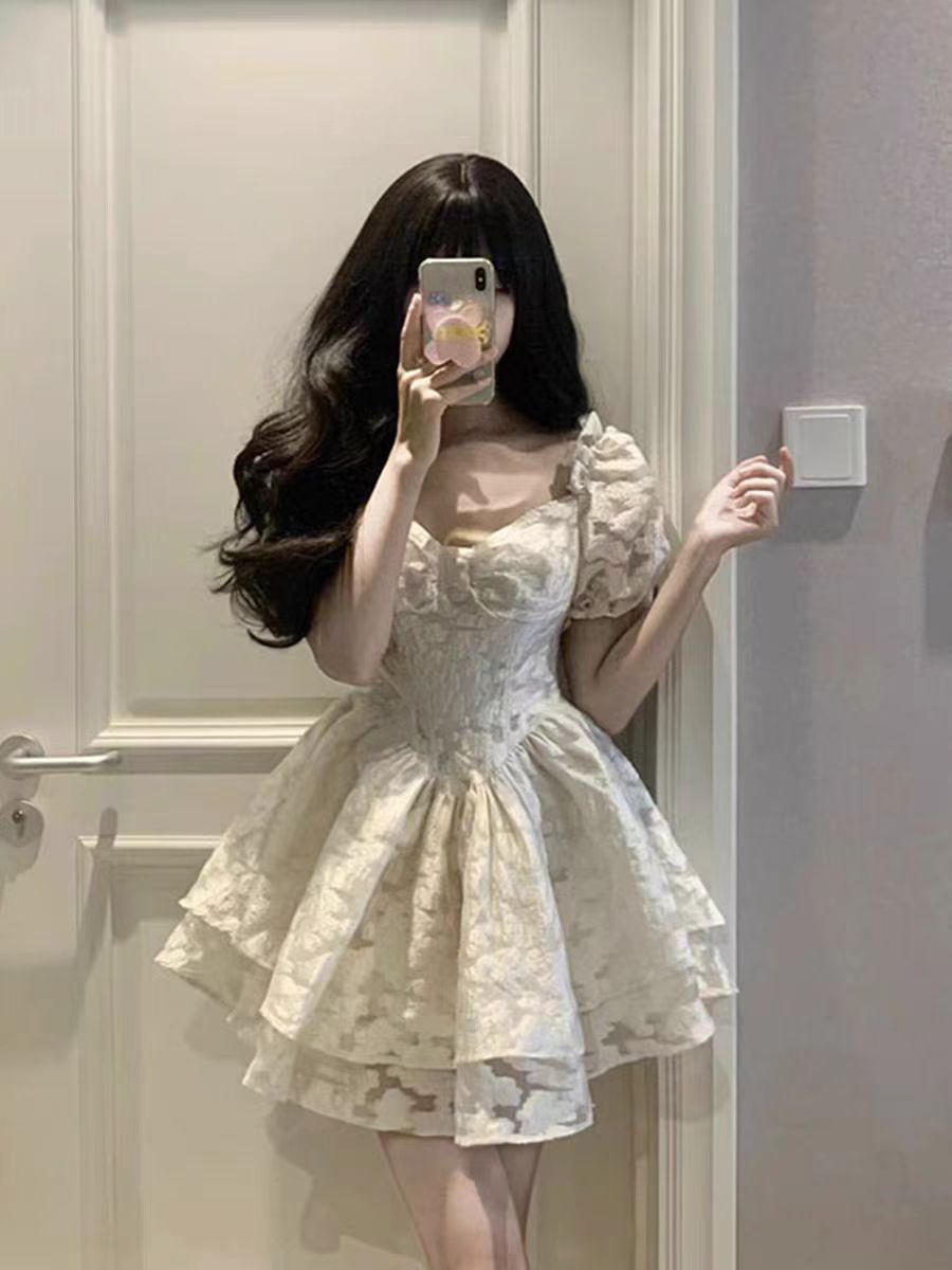 2024 달콤한 스파이스 소녀 퍼프 슬리브 원피스 여자 여름 일본 대학 스타일 쁘띠 허리 공주 퍼프 퍼프 원피스스토어 가기