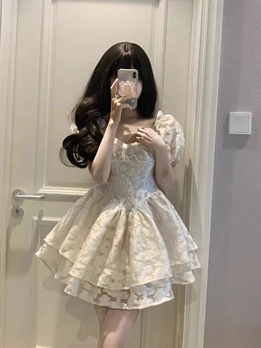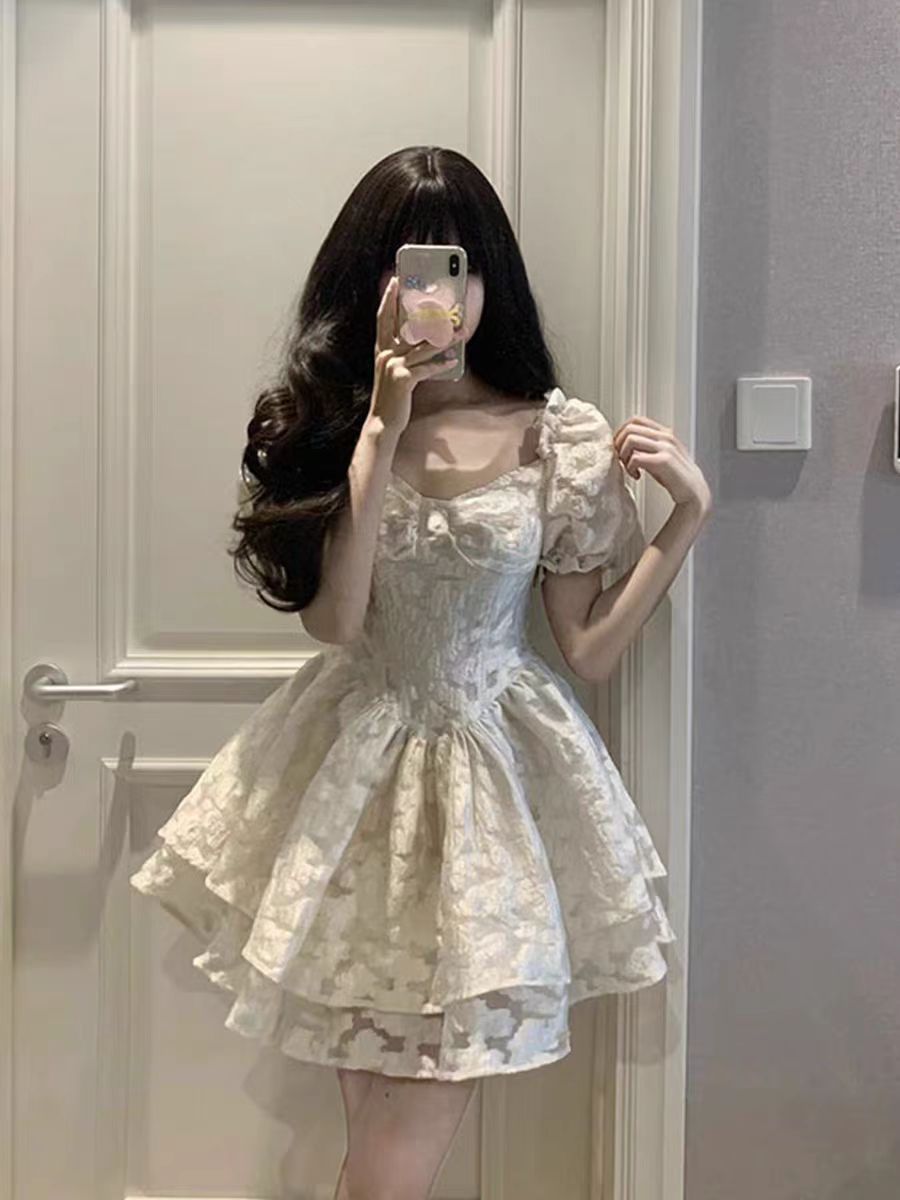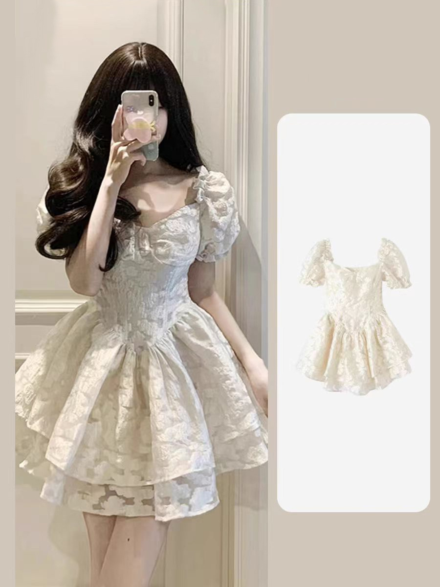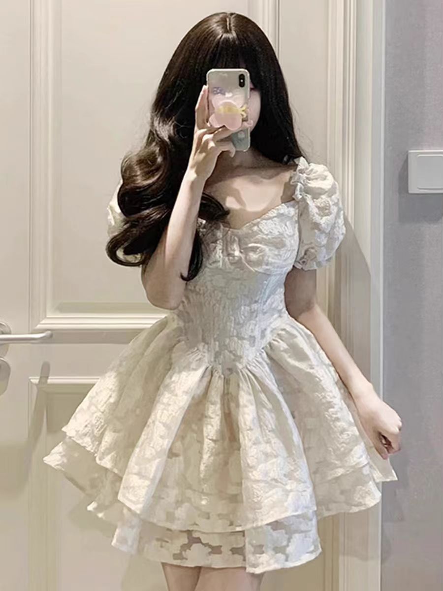 2024 달콤한 스파이스 소녀 퍼프 슬리브 원피스 여자 여름 일본 대학 스타일 쁘띠 허리 공주 퍼프 퍼프 원피스