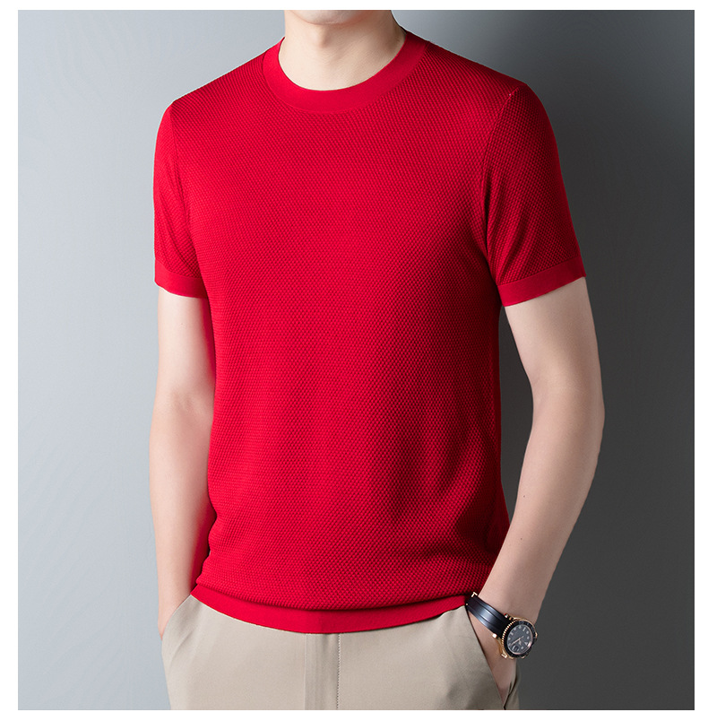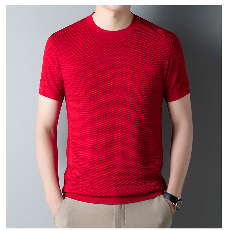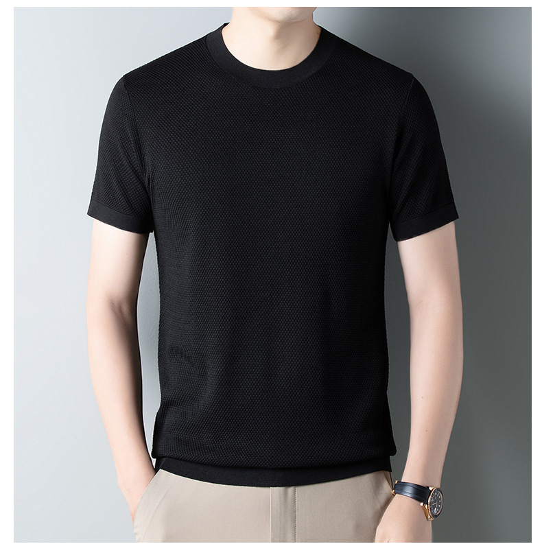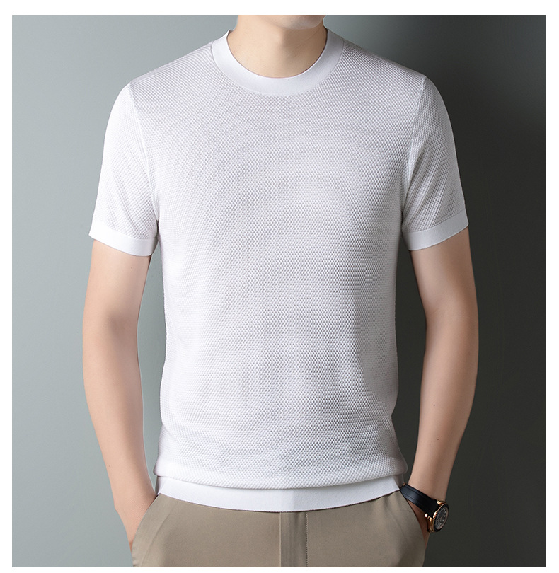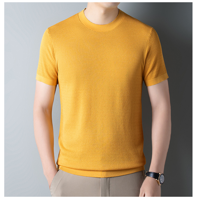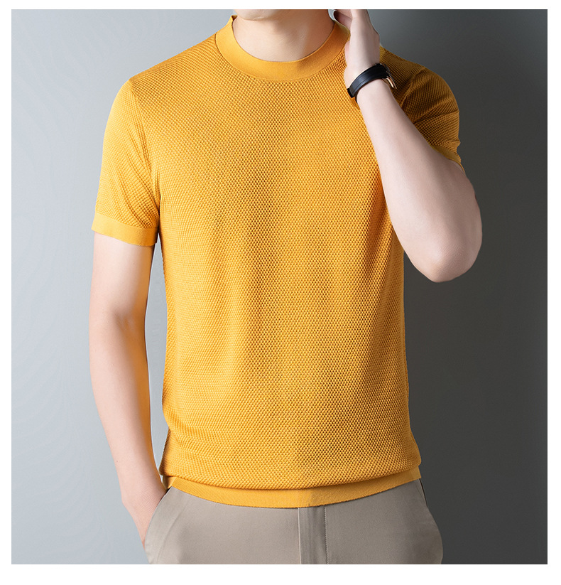 하이 엔드 남성 청소년 새로운 파인애플 패턴 니트 통기성 라운드 넥 짧은 소매 여름 패션 Bottoming 탑 아빠 셔츠