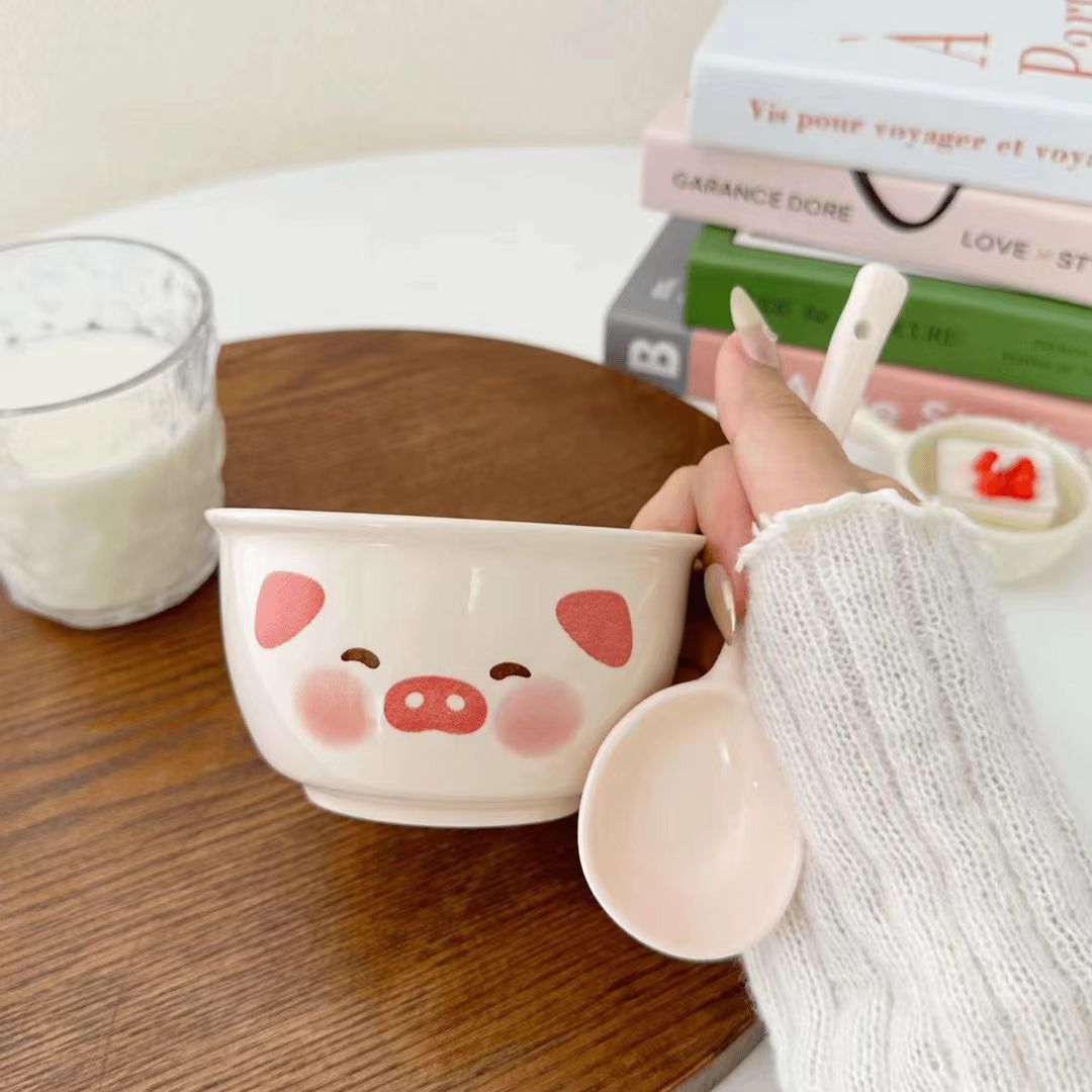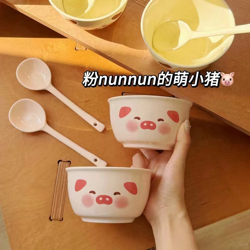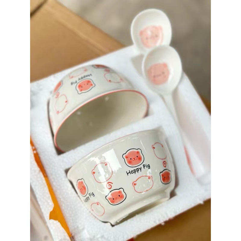 • 핑크 귀여운 돼지 [2 그릇과 2 스푼]]