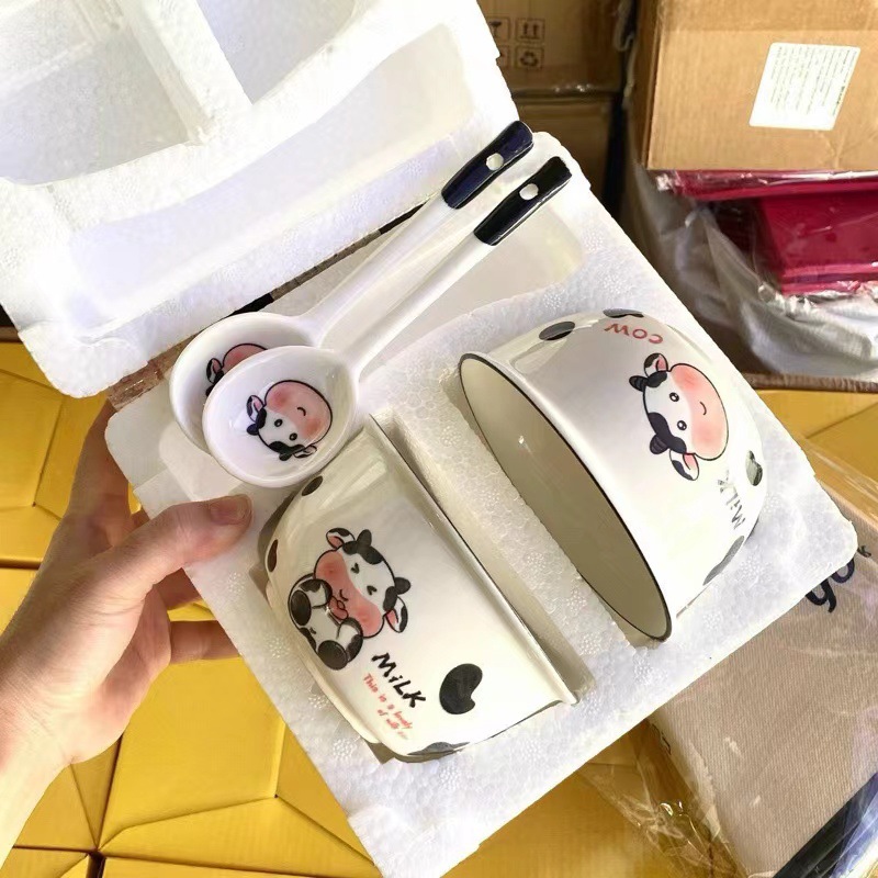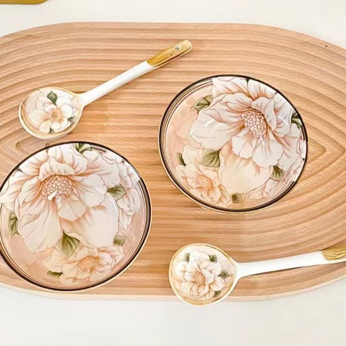 국경 간 VN Nóng bán 그릇 귀여운 대용량 쌀 그릇 높은 색상 가치 세라믹 요리 세트 바이 노럴 수프