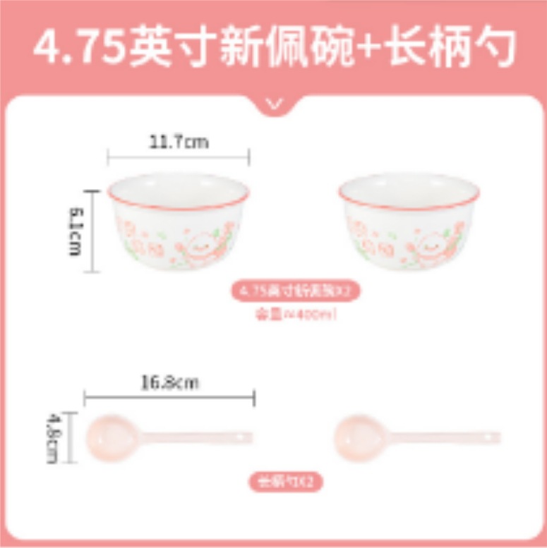 • 4.6inch 반입둥근그릇+트위스트스푼-핑크피기-1개