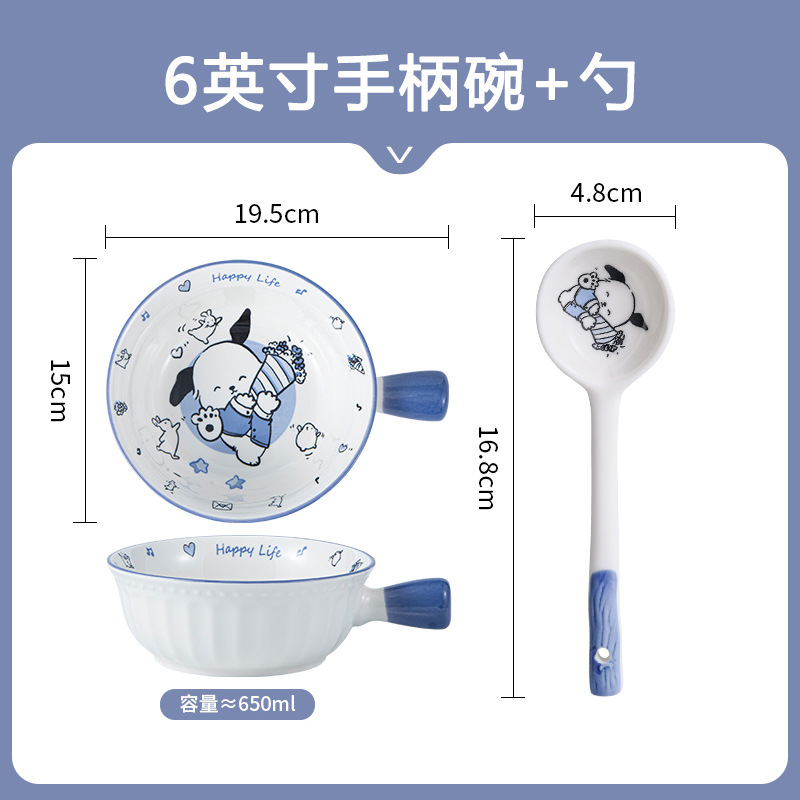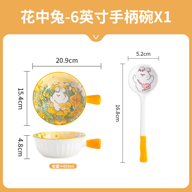 • 6inch 손잡이가 있는 그릇 + 트위스트 스푼 - 꽃 속의 토끼 - 1개