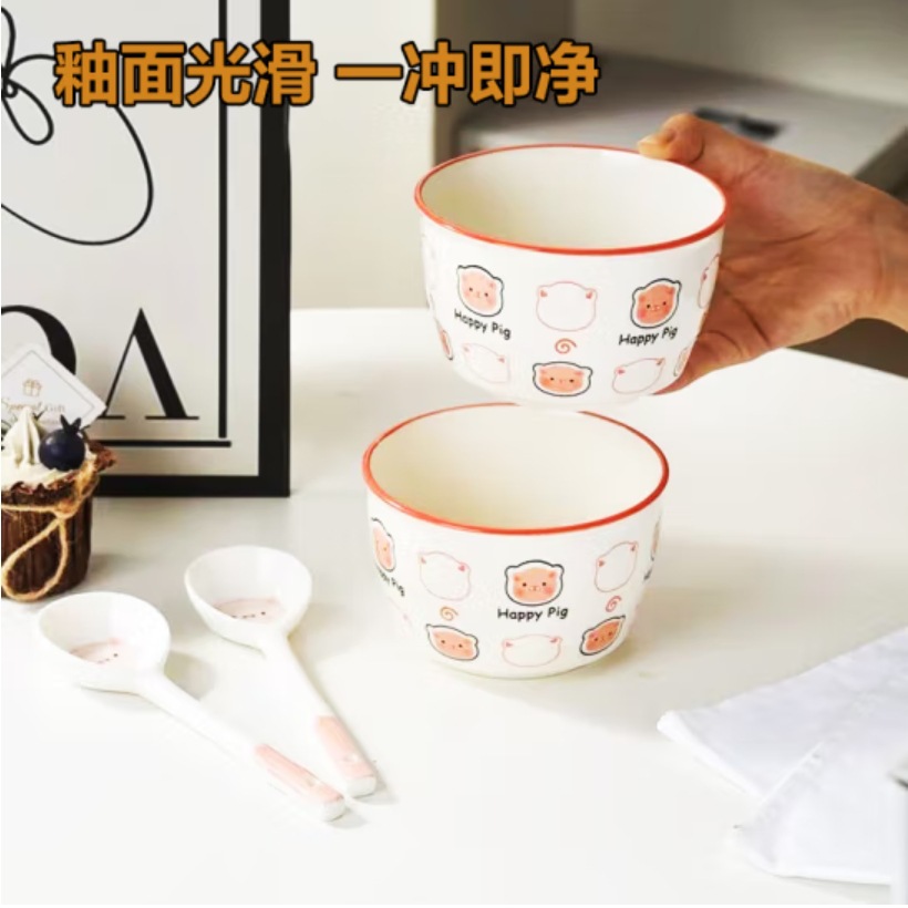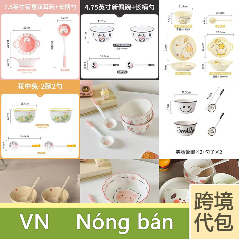 국경 간 VN Nóng bán 그릇 귀여운 대용량 쌀 그릇 높은 색상 가치 세라믹 요리 세트 바이 노럴 수프스토어 가기
