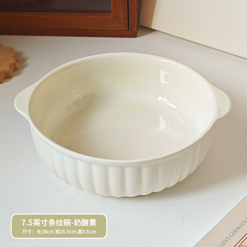 • 7.5 줄무늬 이중 귀 그릇 [트러플 화이트]]