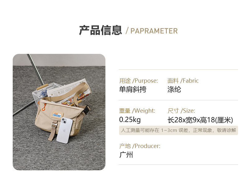일본 Satchel 툴링 크로스 바디 백 어깨 가방 남녀 통근 캐주얼 올 매치 경량 휴대 전화 소형 가방 야외 트렌디 백