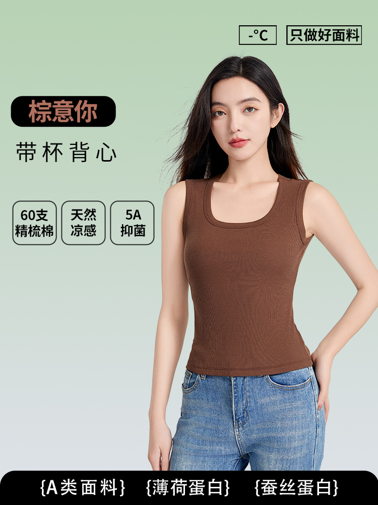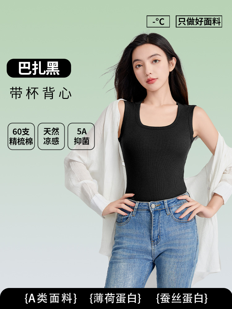 [쿨센스] 여름 가슴 패드가 달린 여성 와이드 숄더 카미솔 조끼스토어 가기