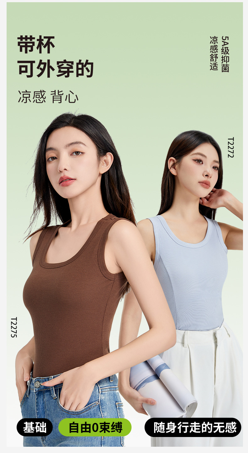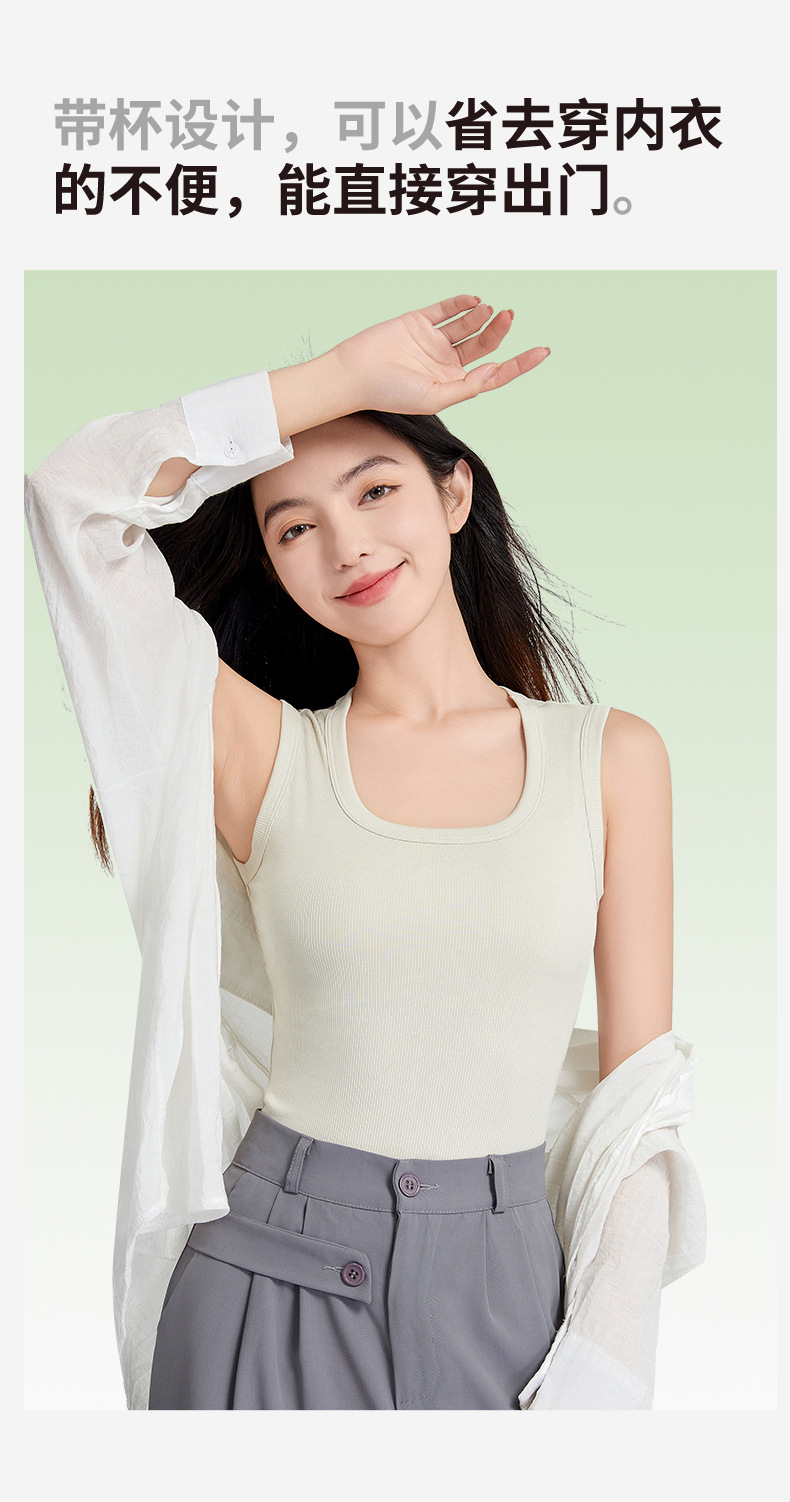 [쿨센스] 여름 가슴 패드가 달린 여성 와이드 숄더 카미솔 조끼
