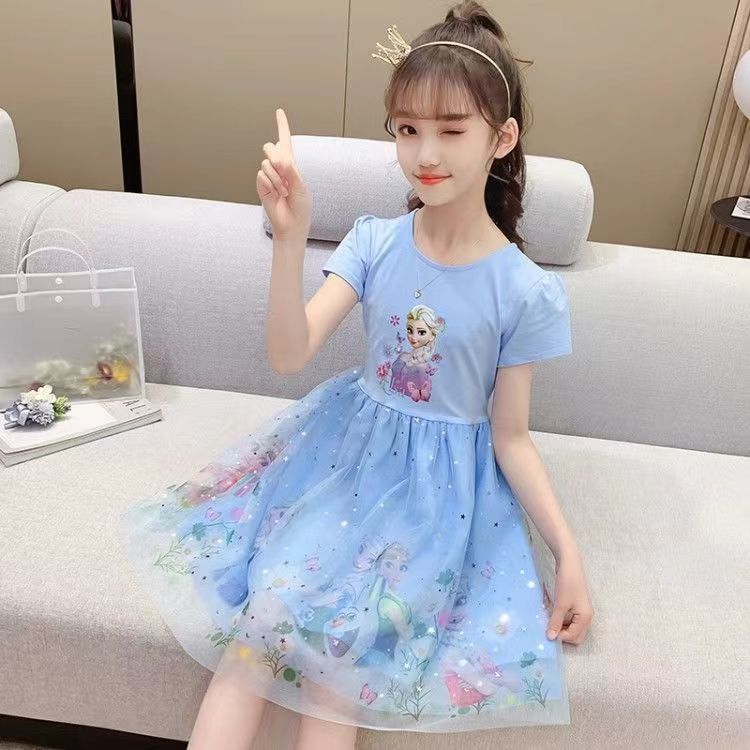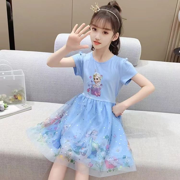소녀 원피스 2024 여름 새 아동복 사이버 축하 공주 원피스 어린이 어린 소녀의 화려한 원사 원피스스토어 가기