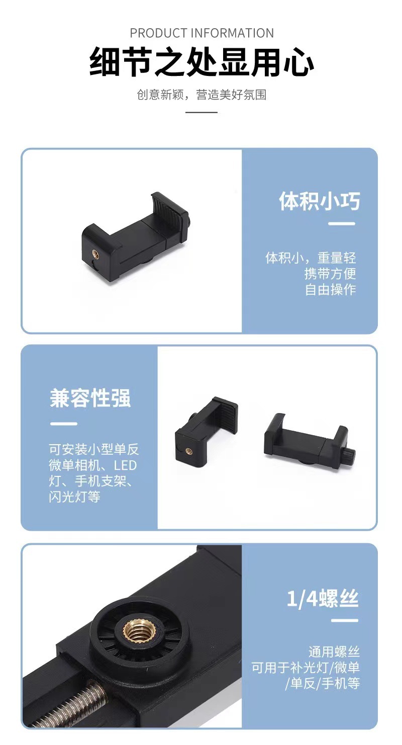 라이브 방송용 범용 휴대폰 거치대 이중 홀 클립 삼각대 셀카 클립 헤드 앵커 촬영 액세서리 회전식 휴대용스토어 가기