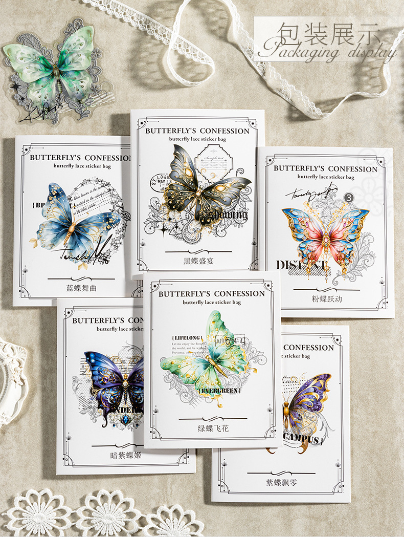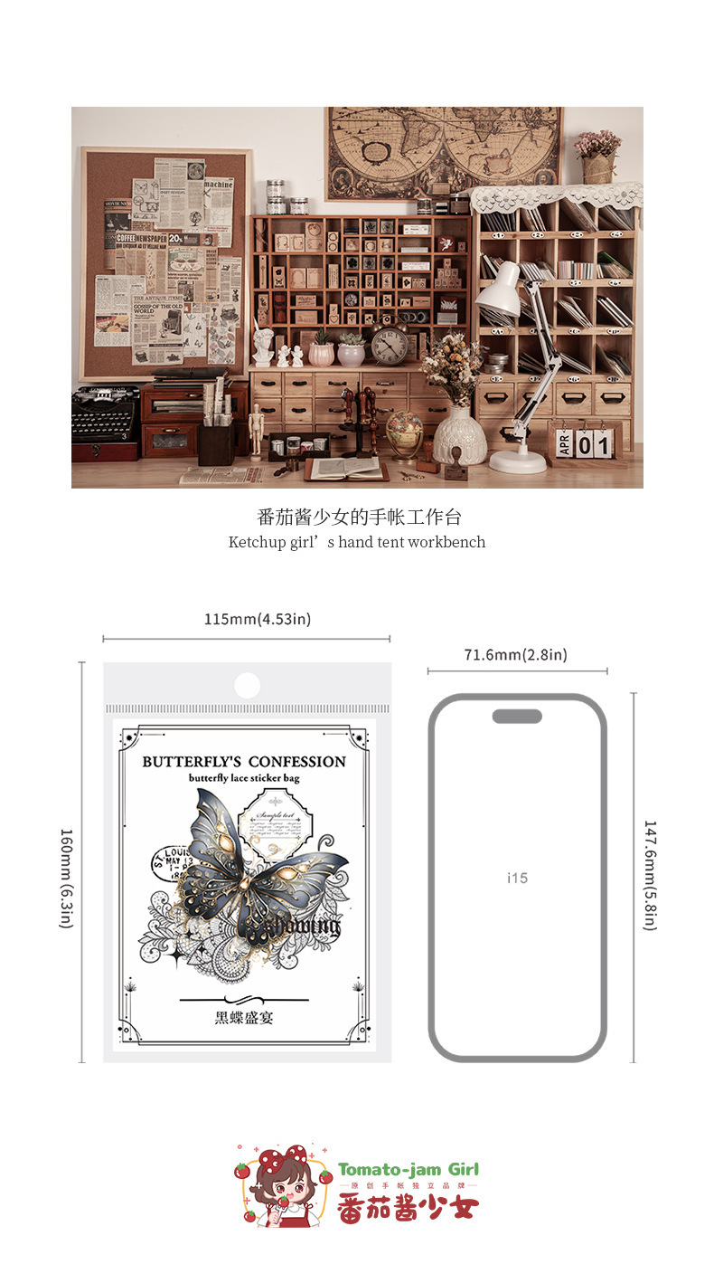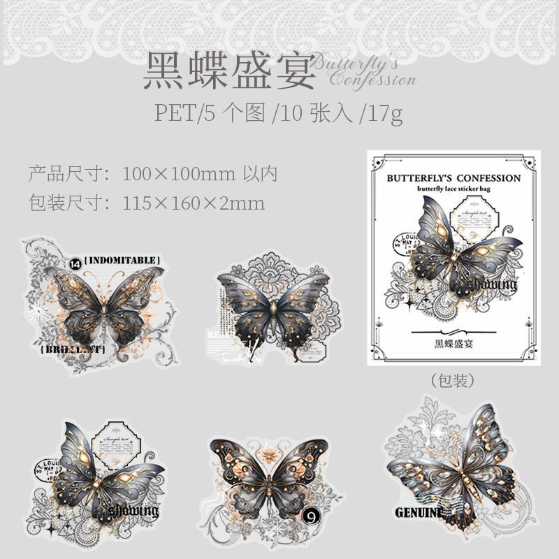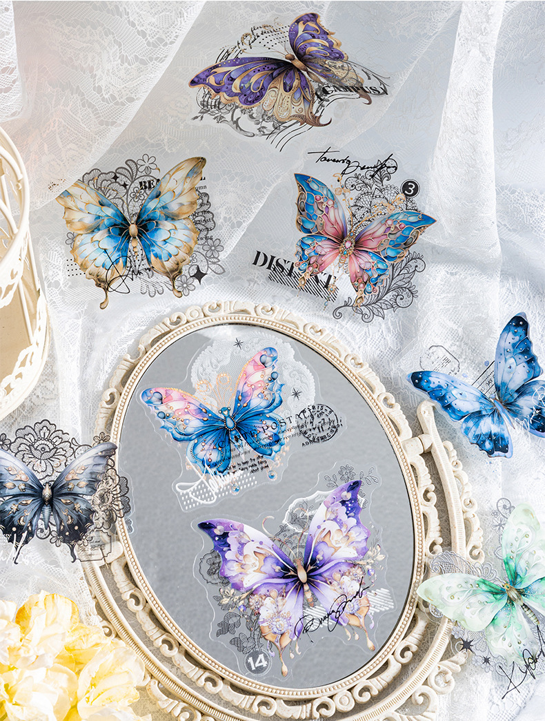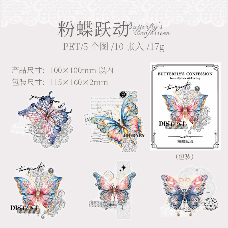 토마토 소스 PET 스티커 가방 나비의 고백 시리즈 복고풍 재료 손 계정 통증 가방 DIY 장식 콜라주