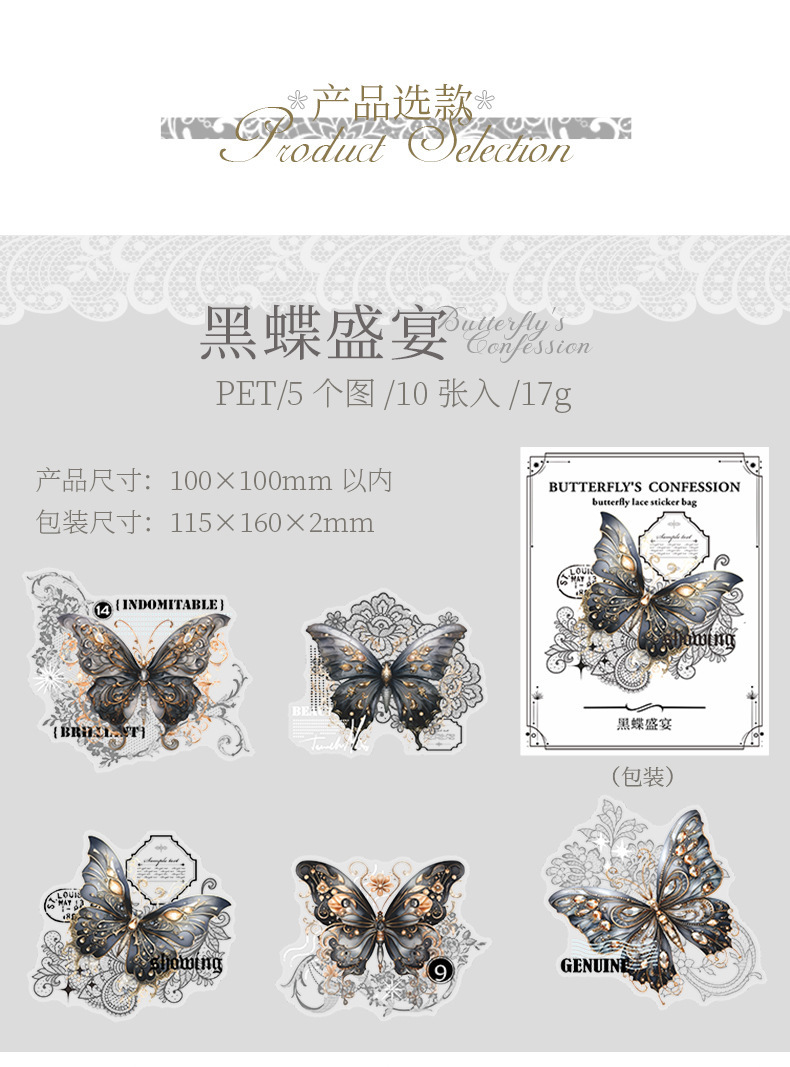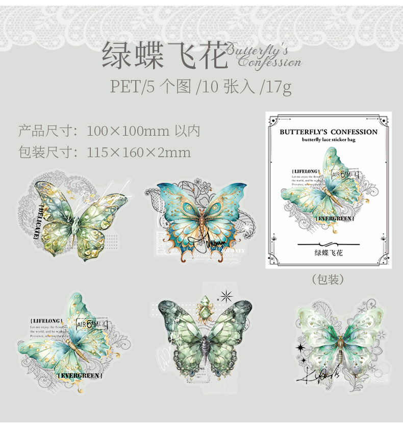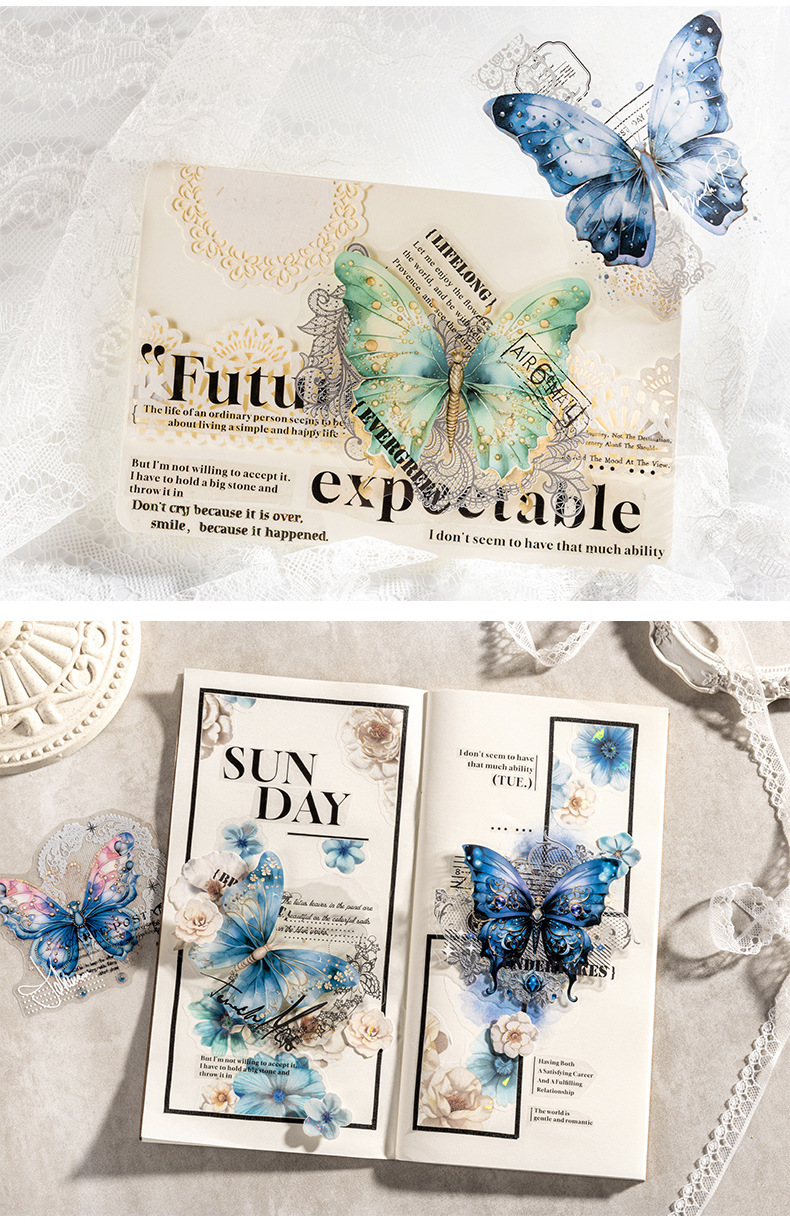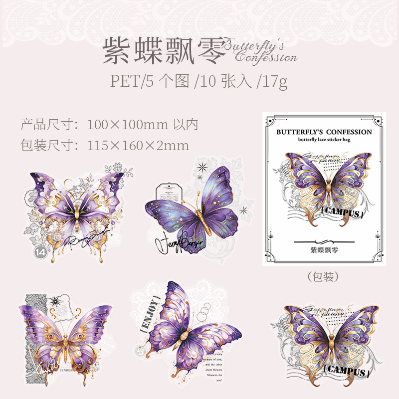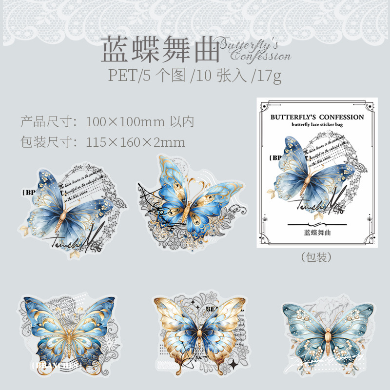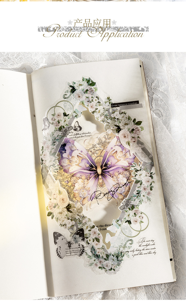 토마토 소스 PET 스티커 가방 나비의 고백 시리즈 복고풍 재료 손 계정 통증 가방 DIY 장식 콜라주