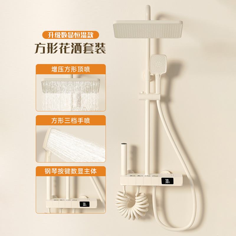 크림 스타일 화이트 일정한 온도 샤워 세트 샤워 욕실 가정용 피아노 키 비 샤워 바디 샤워 헤드 스프레이 헤드