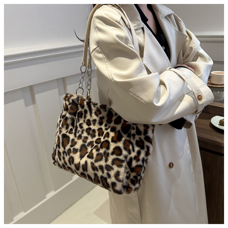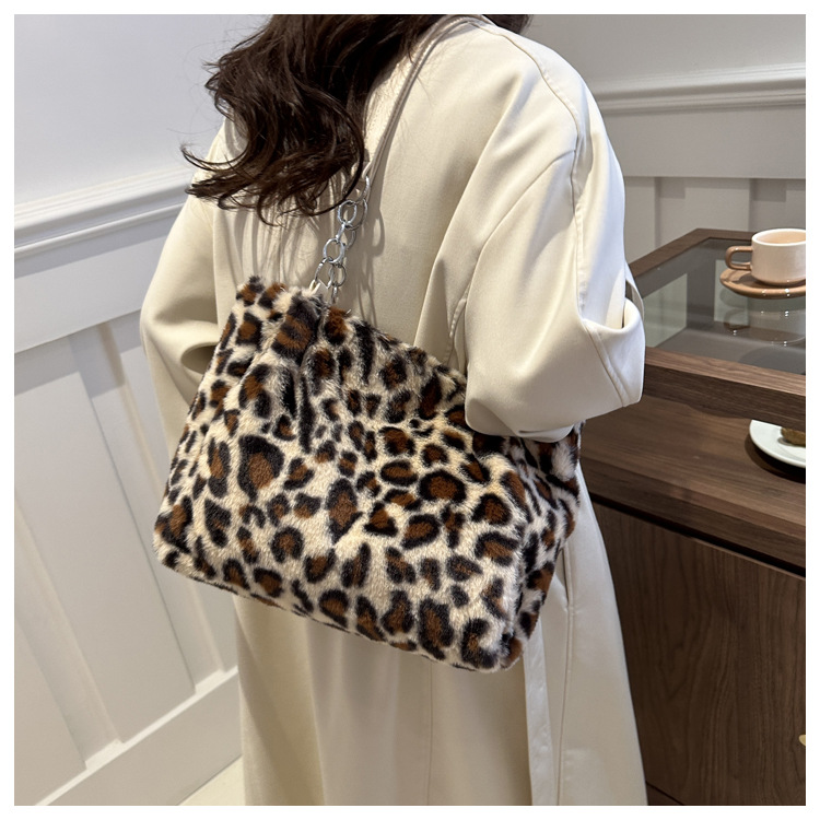여성용 고급 레오파드 프린트 트렌디 체인백, 개성 넘치는 다용도 심플 퍼백, 캐주얼 숄더백 겨드랑이백스토어 가기
