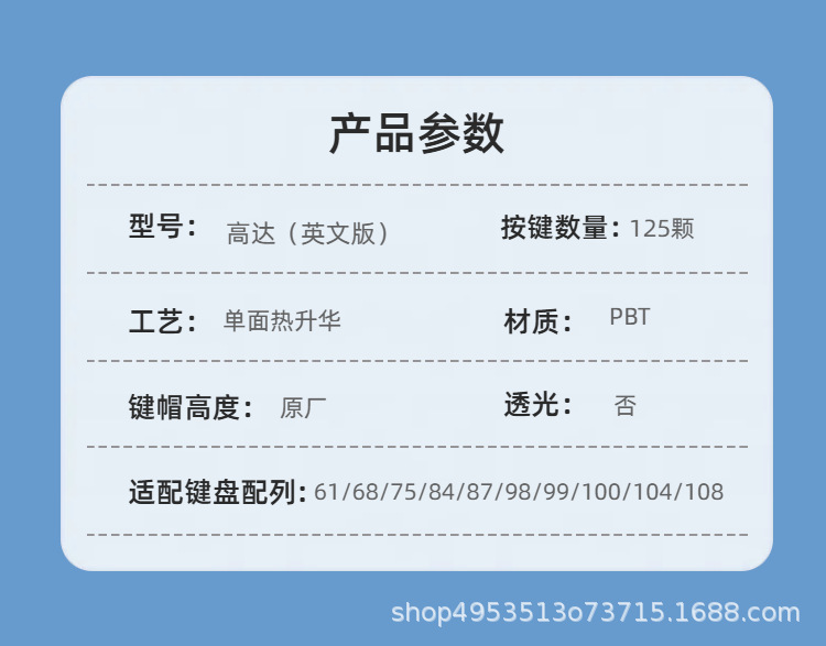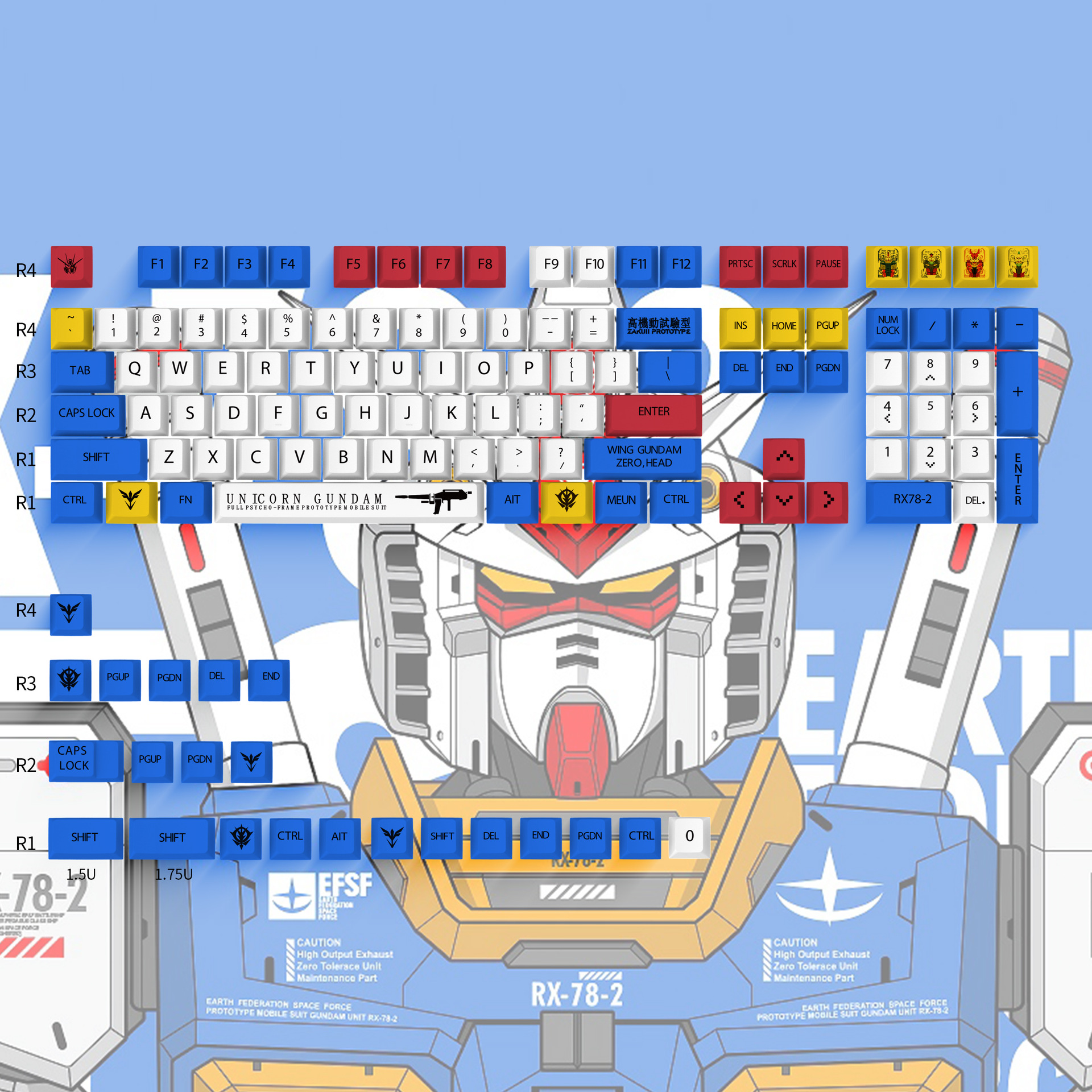 건담 열 승화 키 캡 원래 높이 PBT 소재 크로스 홀 기계 키보드 유니버설 125 키 어댑터 7598