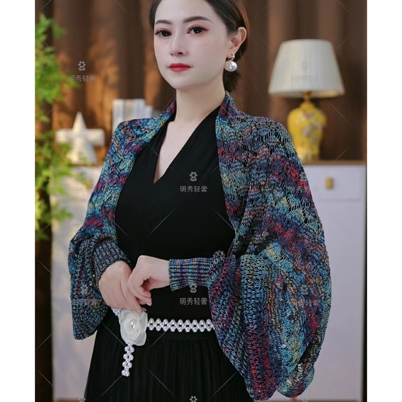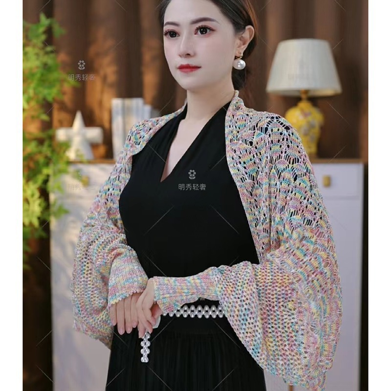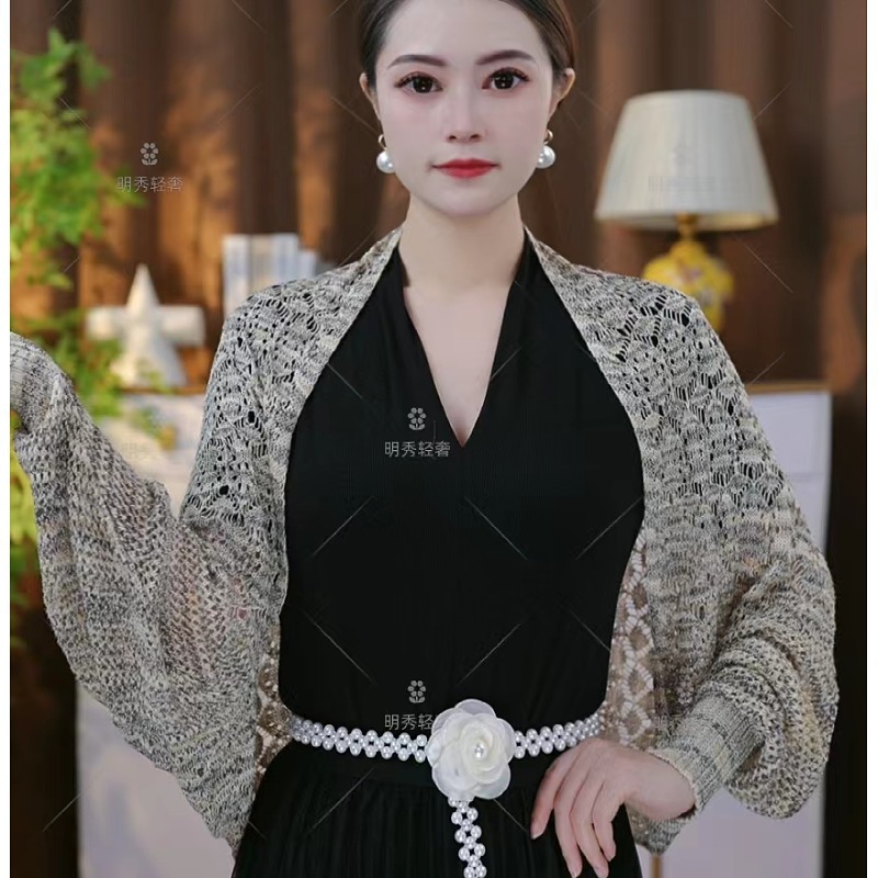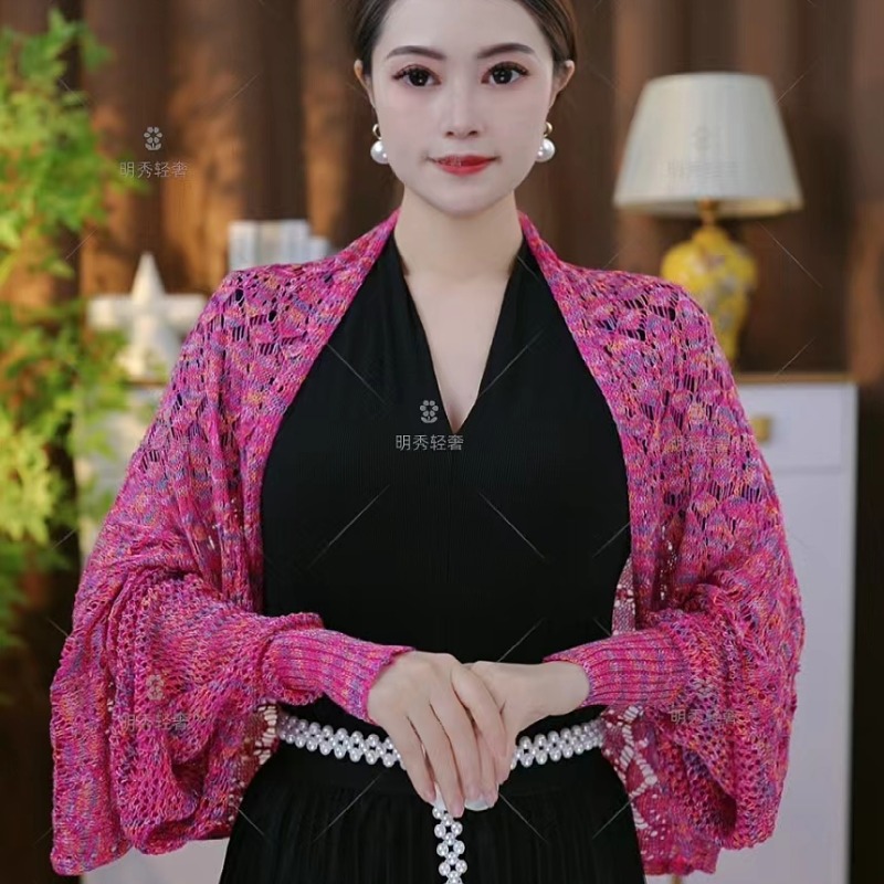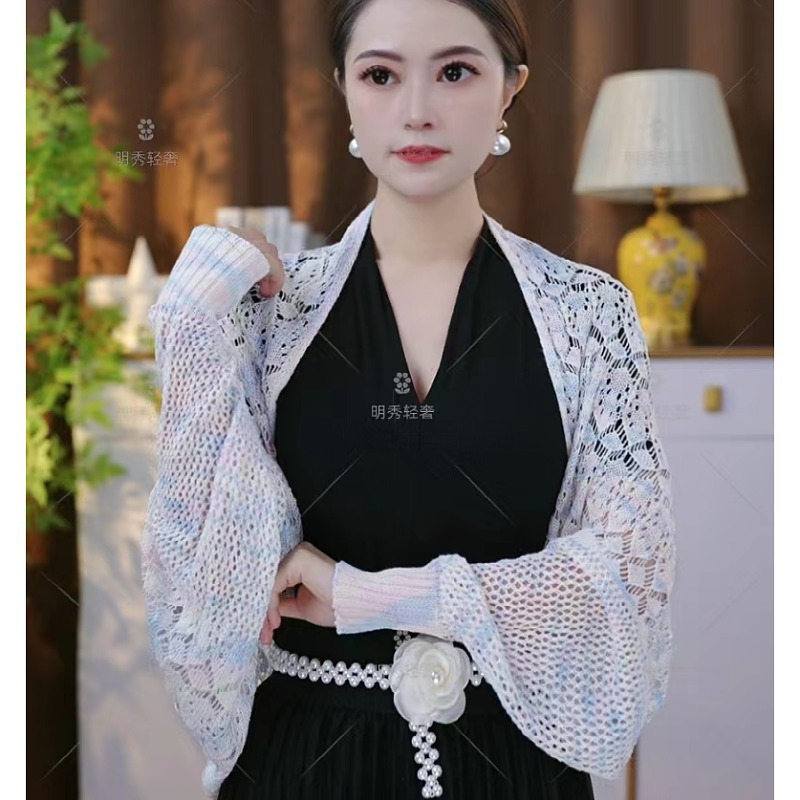 새틴 컬러 속이 빈 긴 소매 목도리 여성의 여름 아이스 실크 에어컨 실 목도리 자궁 경부 카디건 양복 조끼 새로운 한국 스타일 올 매치