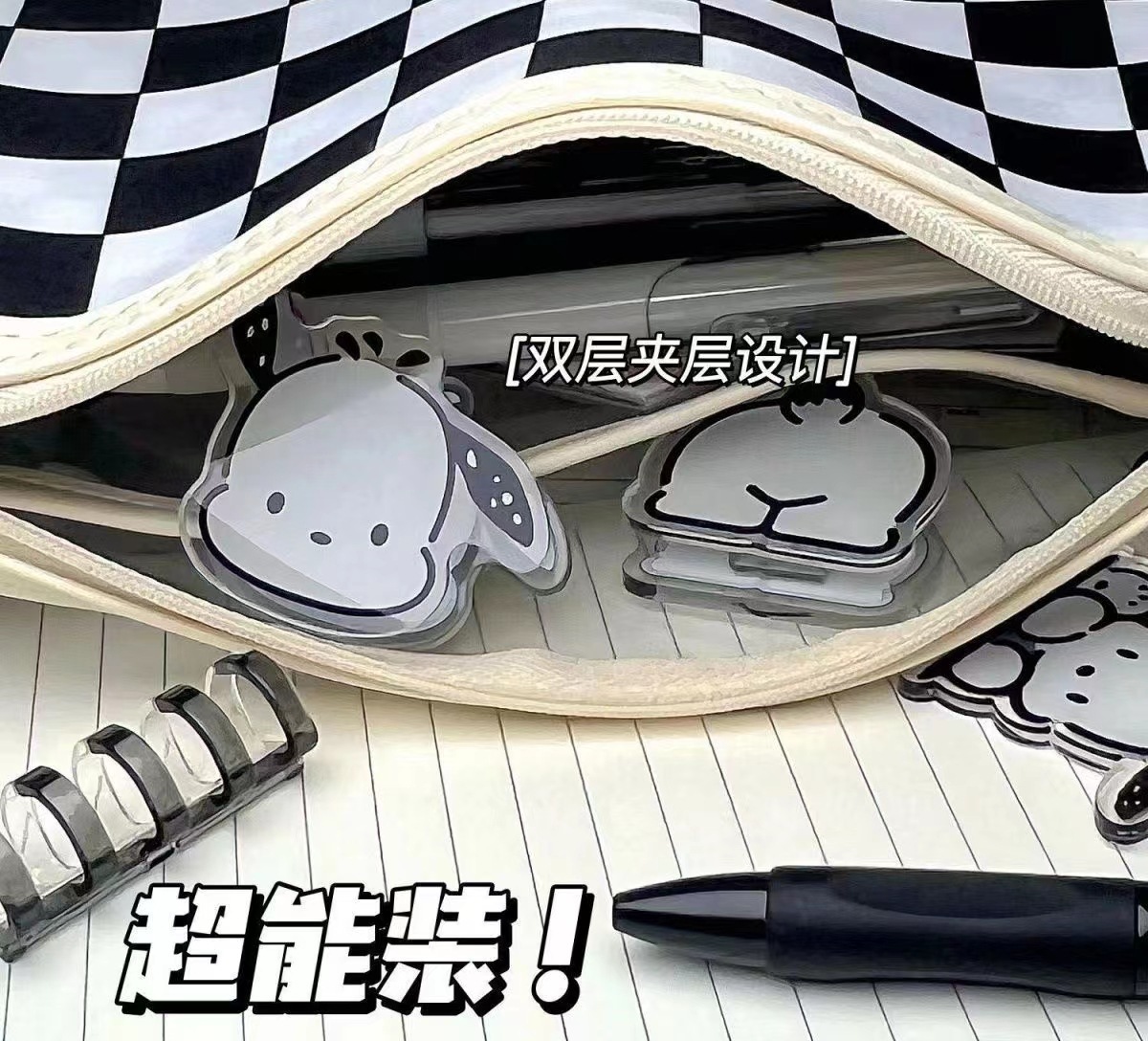 투명한 체크 보드 연필 가방 문구 가방 높은 색상 가치 대용량 간단한 학생 문구 가방 일본 초등학교 학생 연필 가방