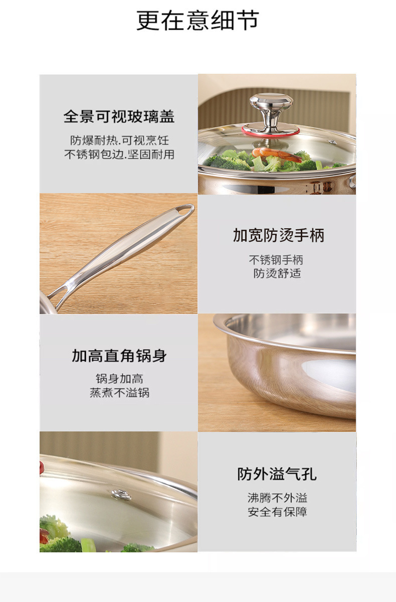코팅되지 않은 316 스테인레스 스틸 팬 가정용 비 스틱 팬 식품 등급 유도 쿠커를위한 두꺼운 특수 요리 팬스토어 가기