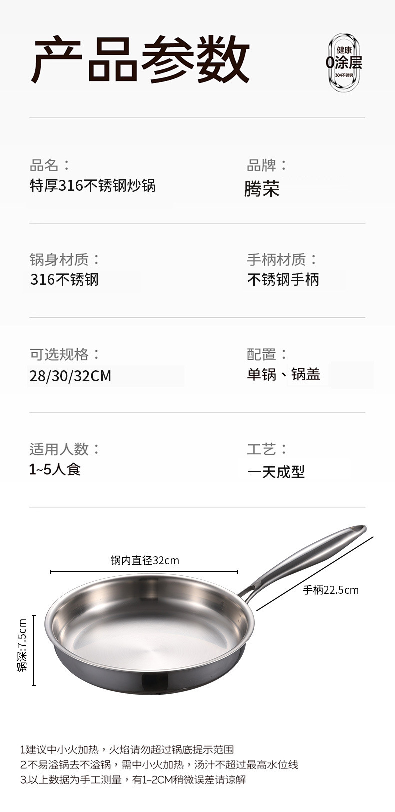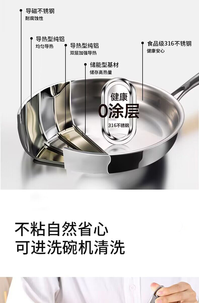 • [커버 없음] 316 3 층 강철 작은 프라이팬 20CM [두껍게 316L 코팅되지 않은 리벳]]