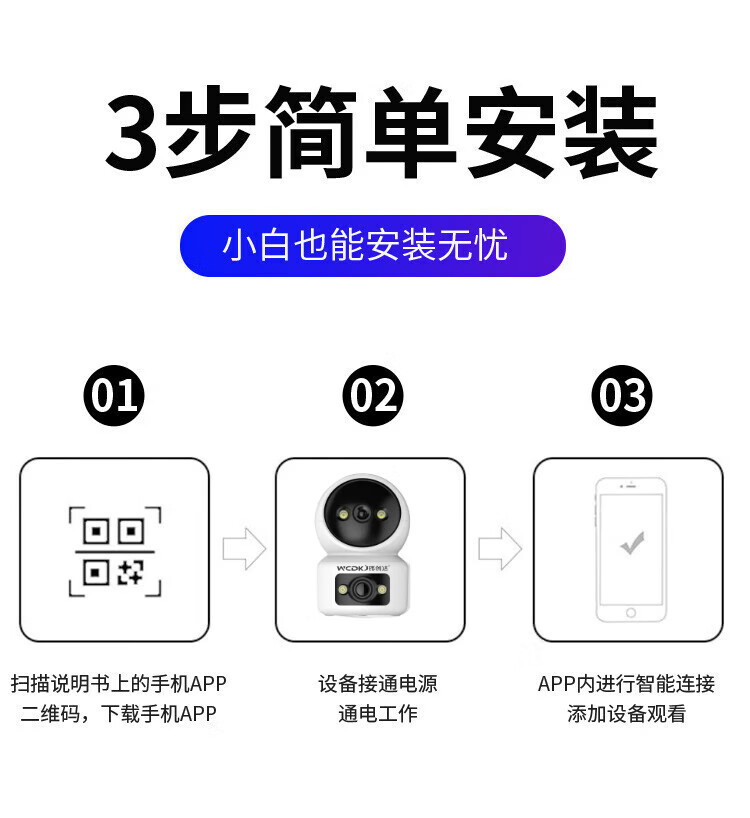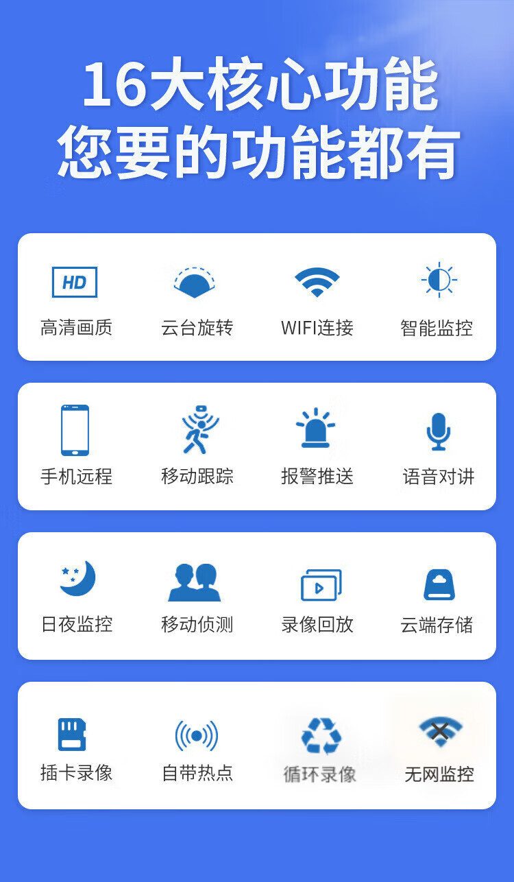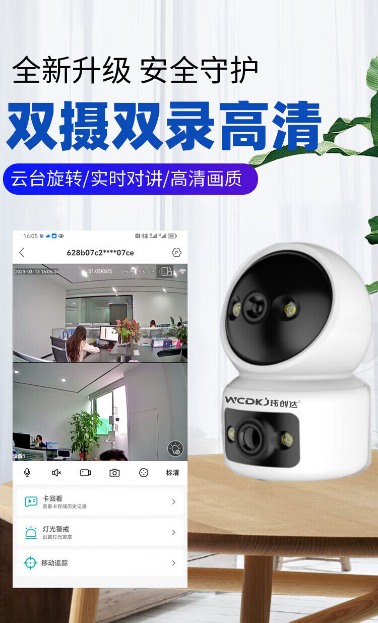 • [더블 카메라 WIFI] 원격 회전 음성 인터콤 지능형 모니터링 64G 사이클 스토리지