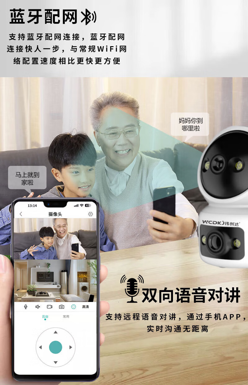 Wei Chuangda WCDKJ 카메라 휴대 전화 원격 모니터 360 도 야간 투시 파노라마 무선 wifi와 죽은 각도 없음
