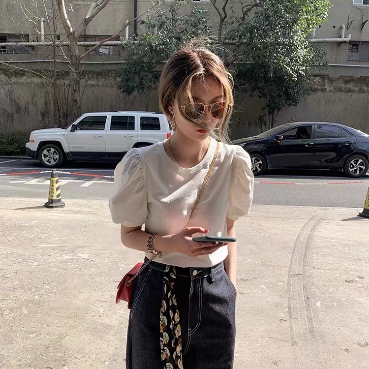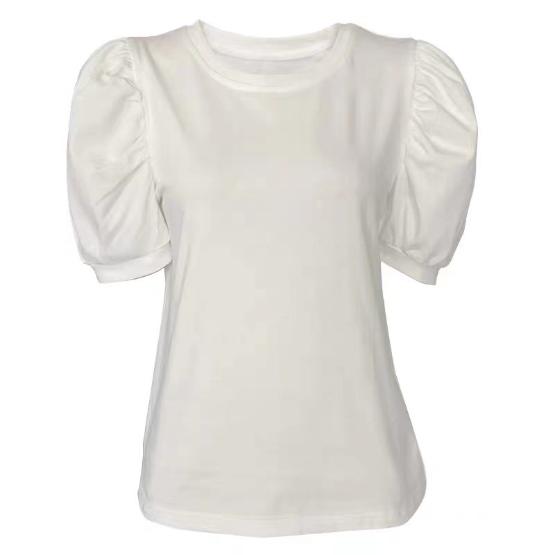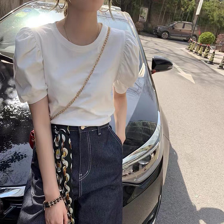 여성용 여름 짧은 소매 티셔츠 퍼프 슬리브 랜턴 슬리브 한국 스타일 세련된 우아한 퓨어 코튼 탑 공장 도매스토어 가기